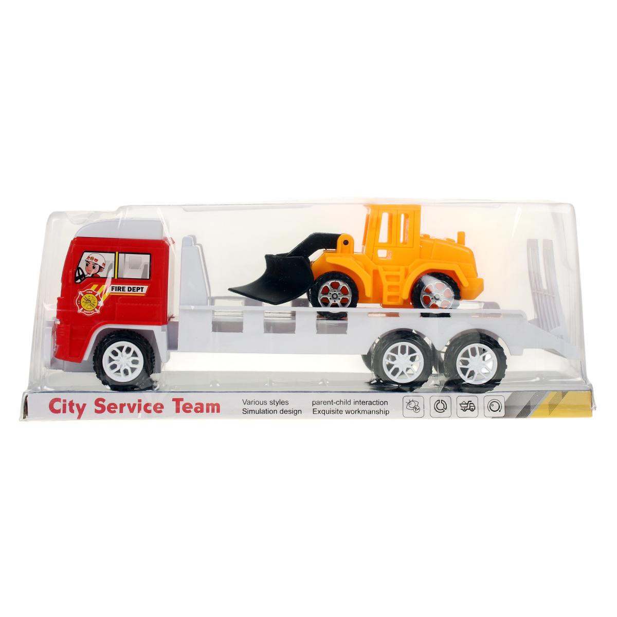 Автовоз имеет длину 30 см и включает в себя экскаватор, который можно легко установить на платформу. Игрушка предназначена для детей от 3 лет и старше, что делает её идеальной для совместной игры с родителями или друзьями. Дети смогут не только развлекаться, но и учиться взаимодействовать друг с другом, создавая свои собственные игровые сценарии.