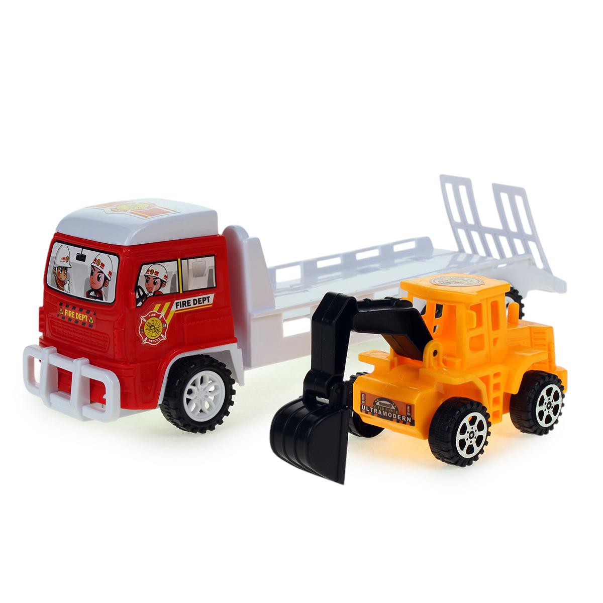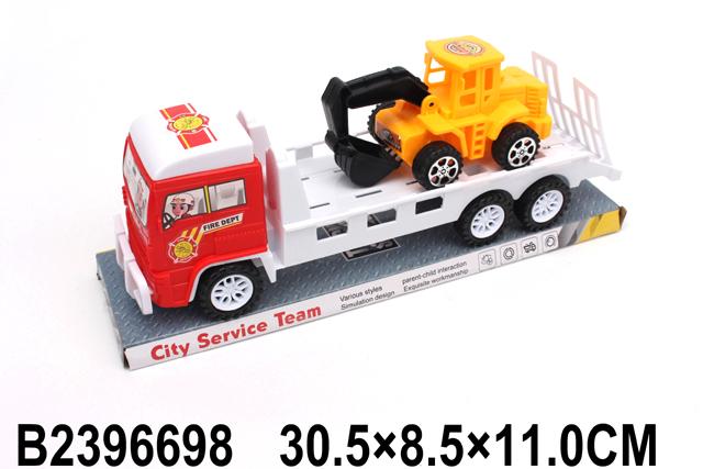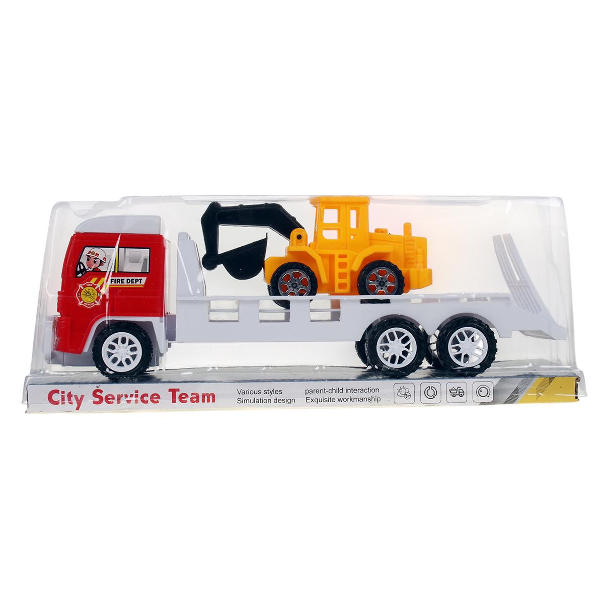 Инерционный грузовик с экскаватором, 30см, пластик, серия "City Service Team"