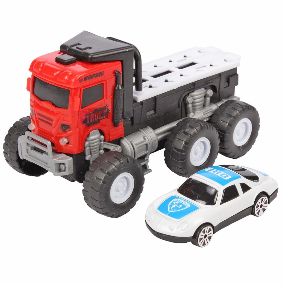 Автовоз имеет размеры 12 см в длину, 7 см в ширину и 7 см в высоту, что делает его идеальным для маленьких рук. Материал — прочный пластик, который выдержит активные игры. В наборе вы найдете две машинки, что позволяет вашему ребенку сразу начать игру без дополнительных покупок.