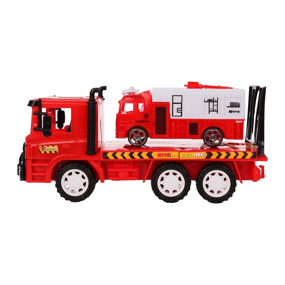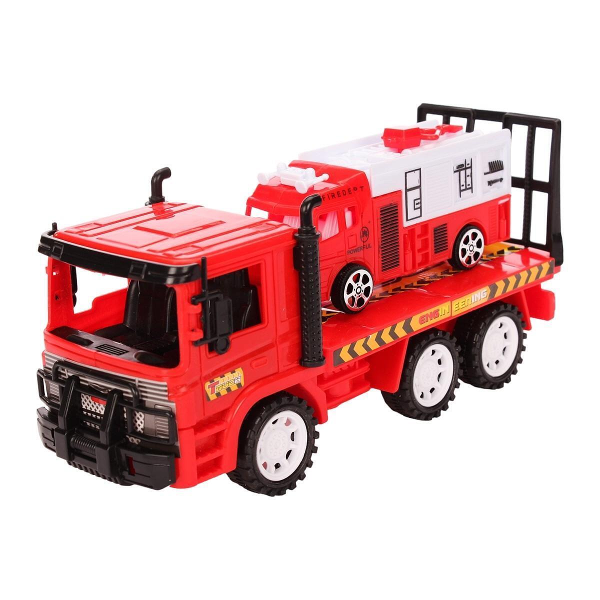 Автовоз инерционный с пожарной машиной, пластик, 23.5х7.7х10.5см