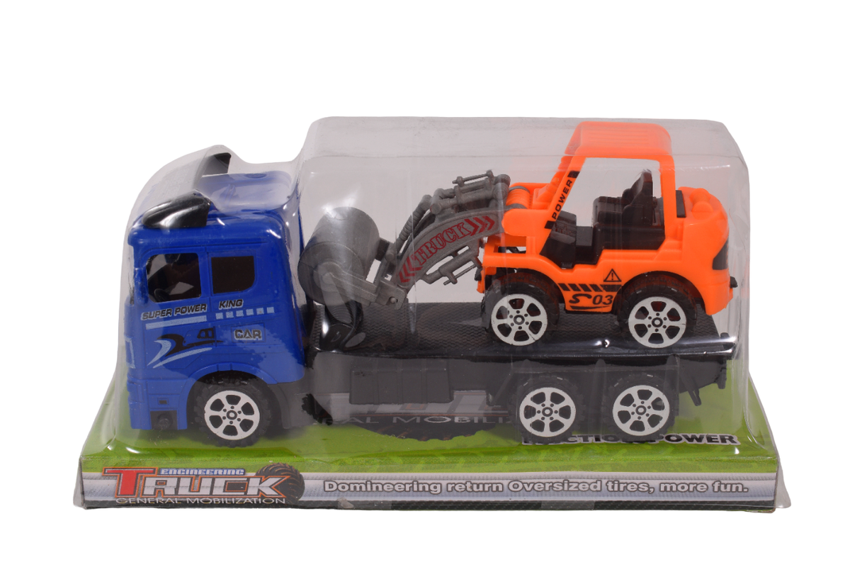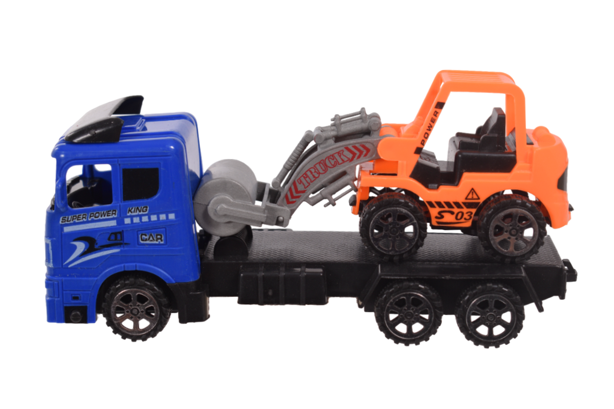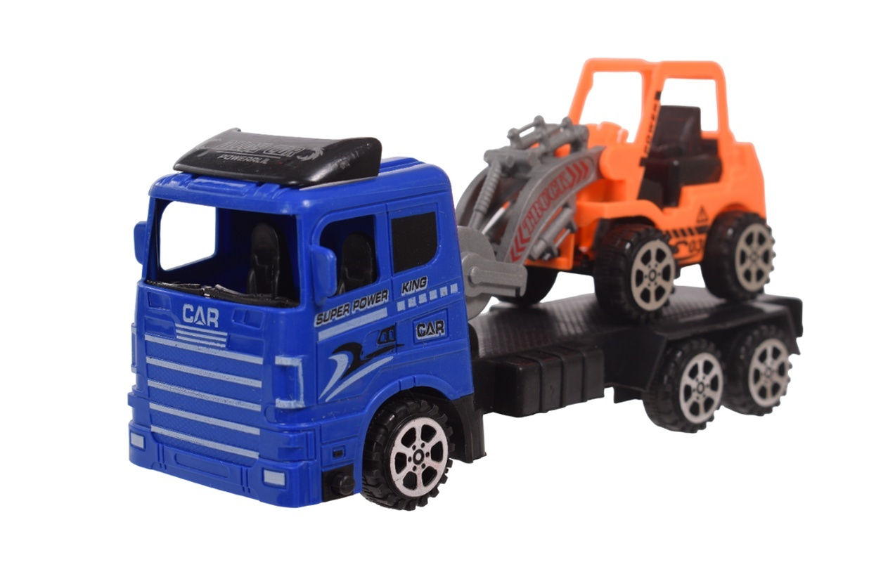 Автовоз инерционный с прицепом, цвет синий/оранжевый, материал пластик
