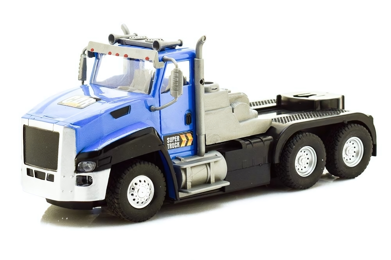 Масштабная модель повторяет конструкцию настоящей фуры: от решетки радиатора до сцепного устройства для прицепа. Сочная цветовая гамма в сине-черных тонах и стильные графические элементы создают эффект профессионального транспорта.
