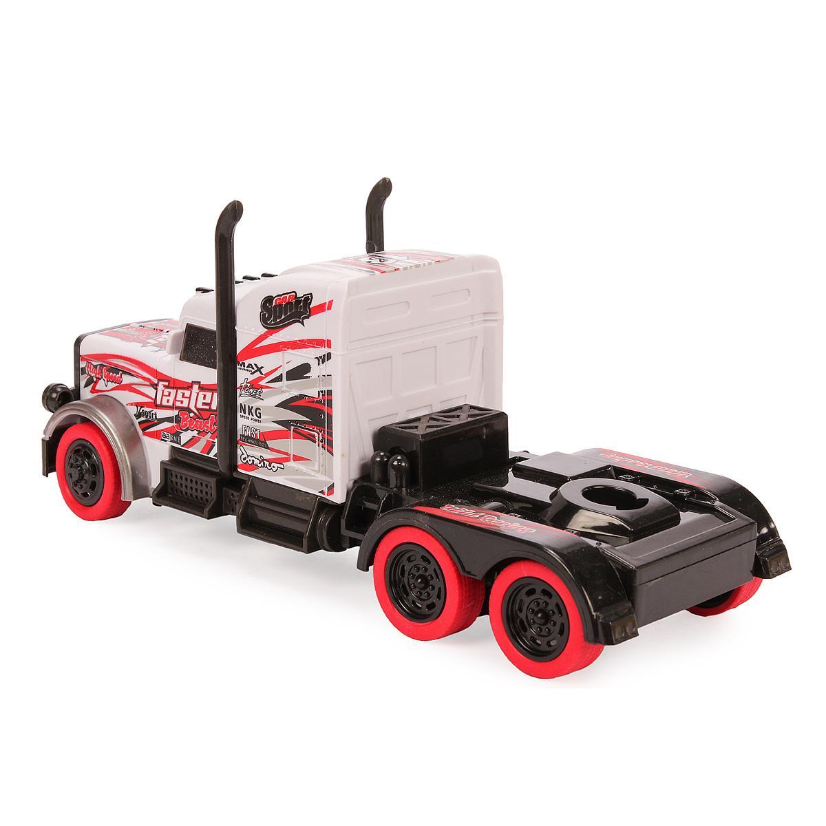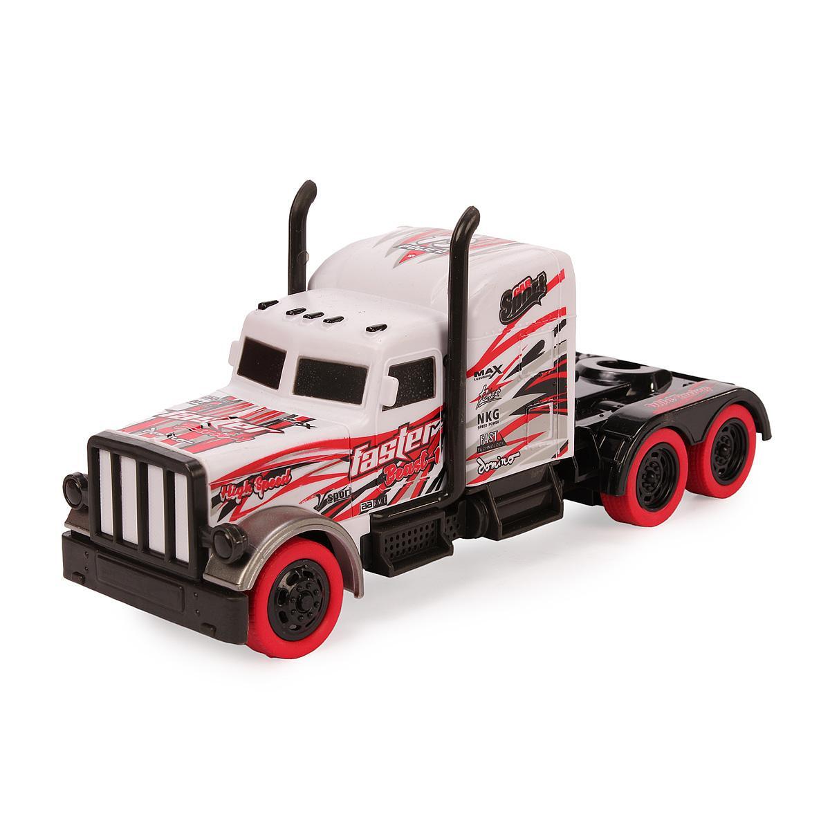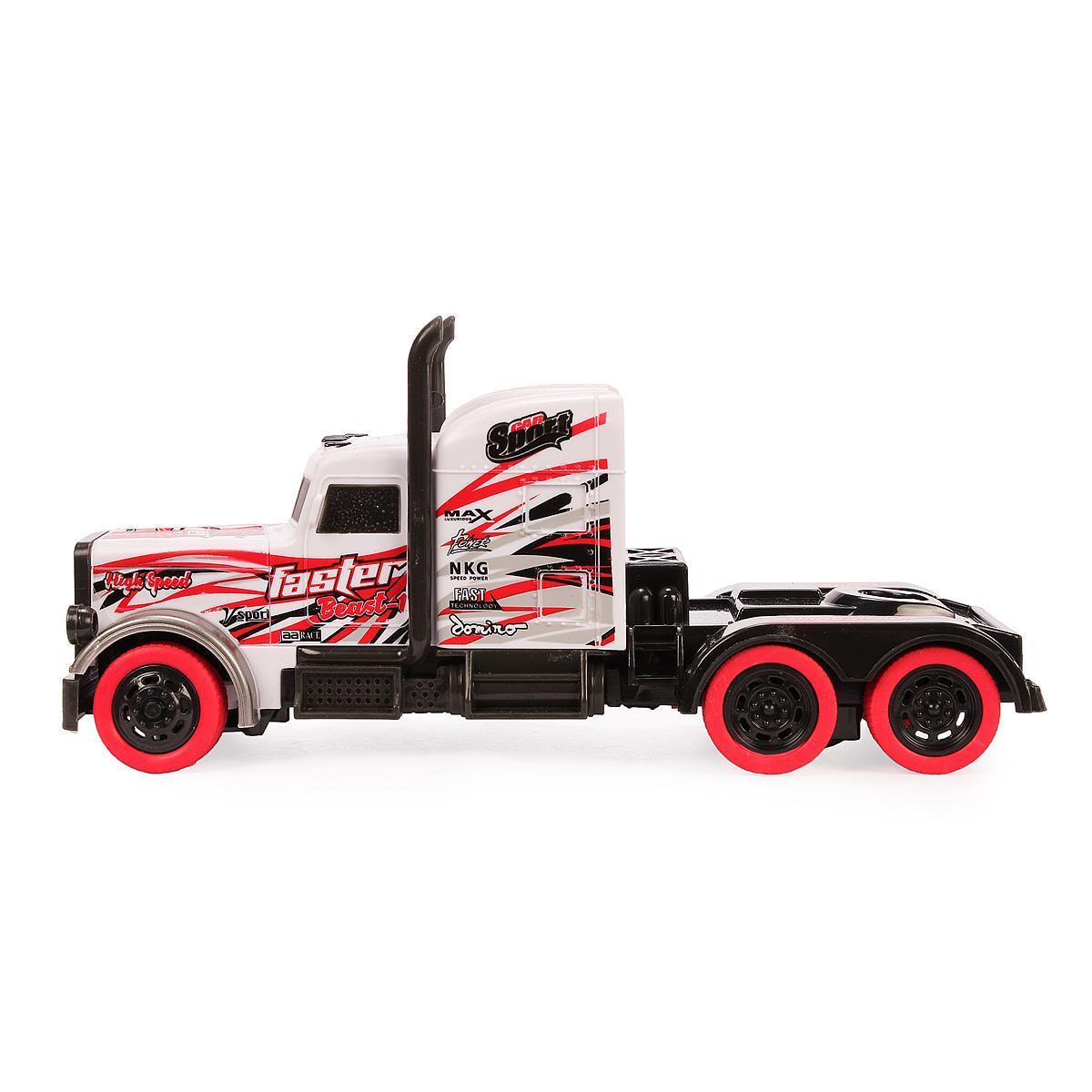 Модель с аэродинамическим кузовом и графикой «Faster» создана для истинных ценителей техники. Большие колеса с красными дисками обеспечивают проходимость, а прочный пластиковый корпус выдерживает активную эксплуатацию.