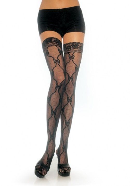 Эти черные чулки до середины бедра созданы, чтобы подчеркнуть красоту ваших ног и добавить нотку соблазна в ваш образ. Полупрозрачная ажурная ткань с замысловатым рисунком в виде бантов и лент выглядит невероятно женственно и элегантно. Идеальный выбор для романтического свидания, фотосессии или создания незабываемого образа для особого случая.
