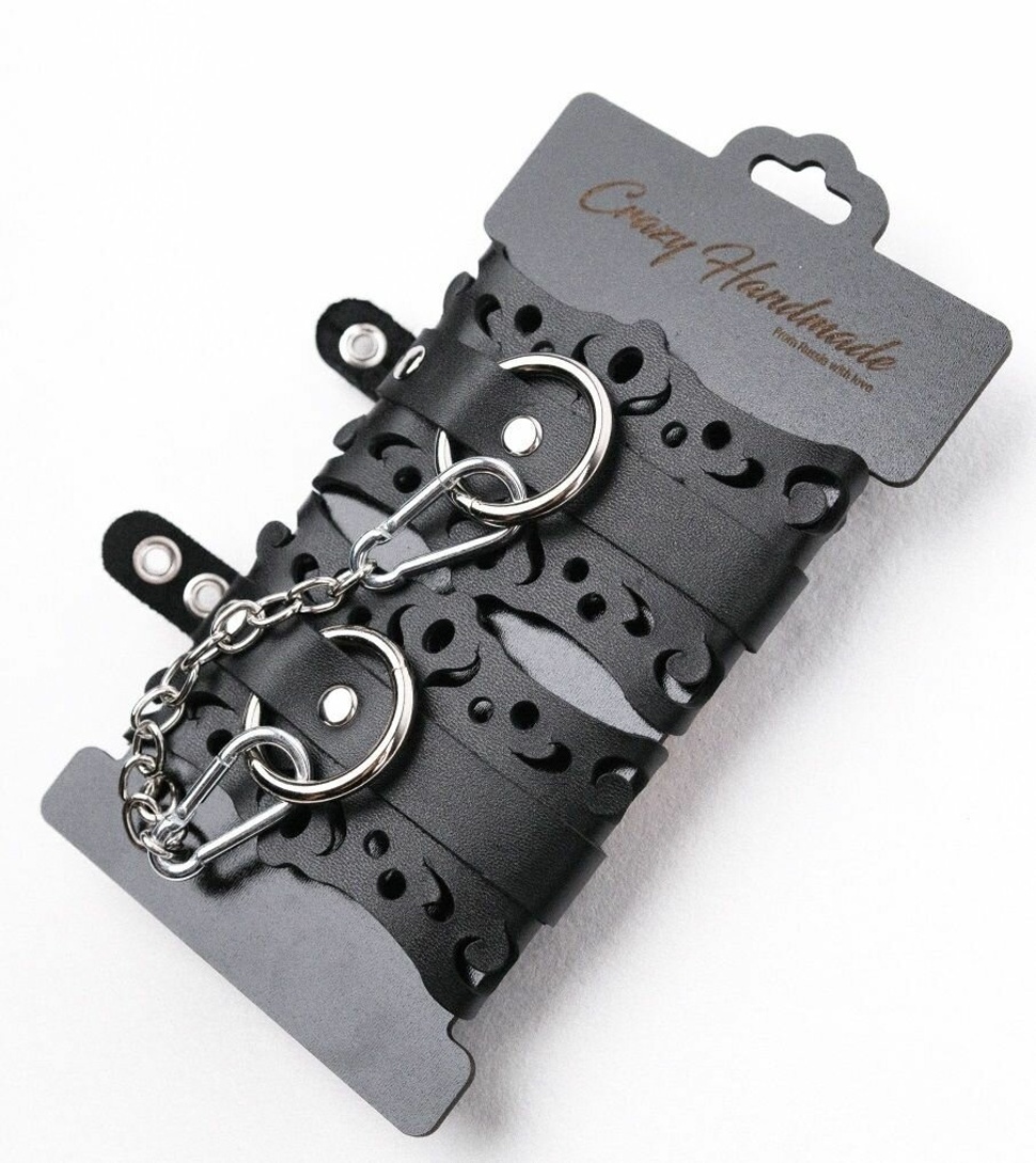Наручники выполнены из натуральной кожи черного цвета, что обеспечивает естественный вид и тактильные ощущения. Металлические компоненты изготовлены из нержавеющего или хромированного металла для долговечности. Размер изделия подходит для стандартных запястий, позволяя комфортную фиксацию. Эти аксессуары произведены для взрослых, обеспечивая безопасность и удовольствие в ваших интимных моментах.