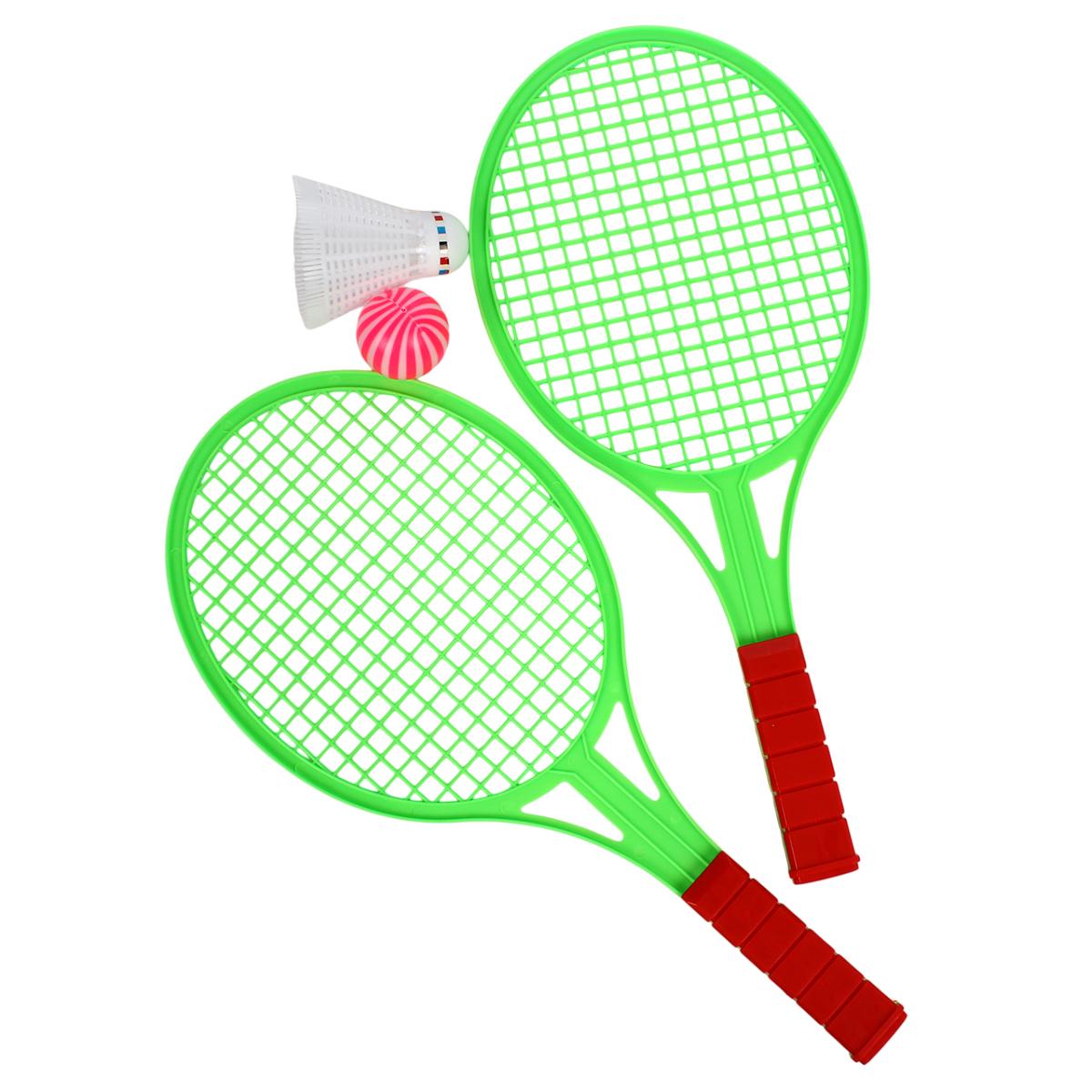 - Две прочные пластиковые ракетки с рельефными рукоятками, которые обеспечивают надежный захват и предотвращают выскальзывание во время активных движений.