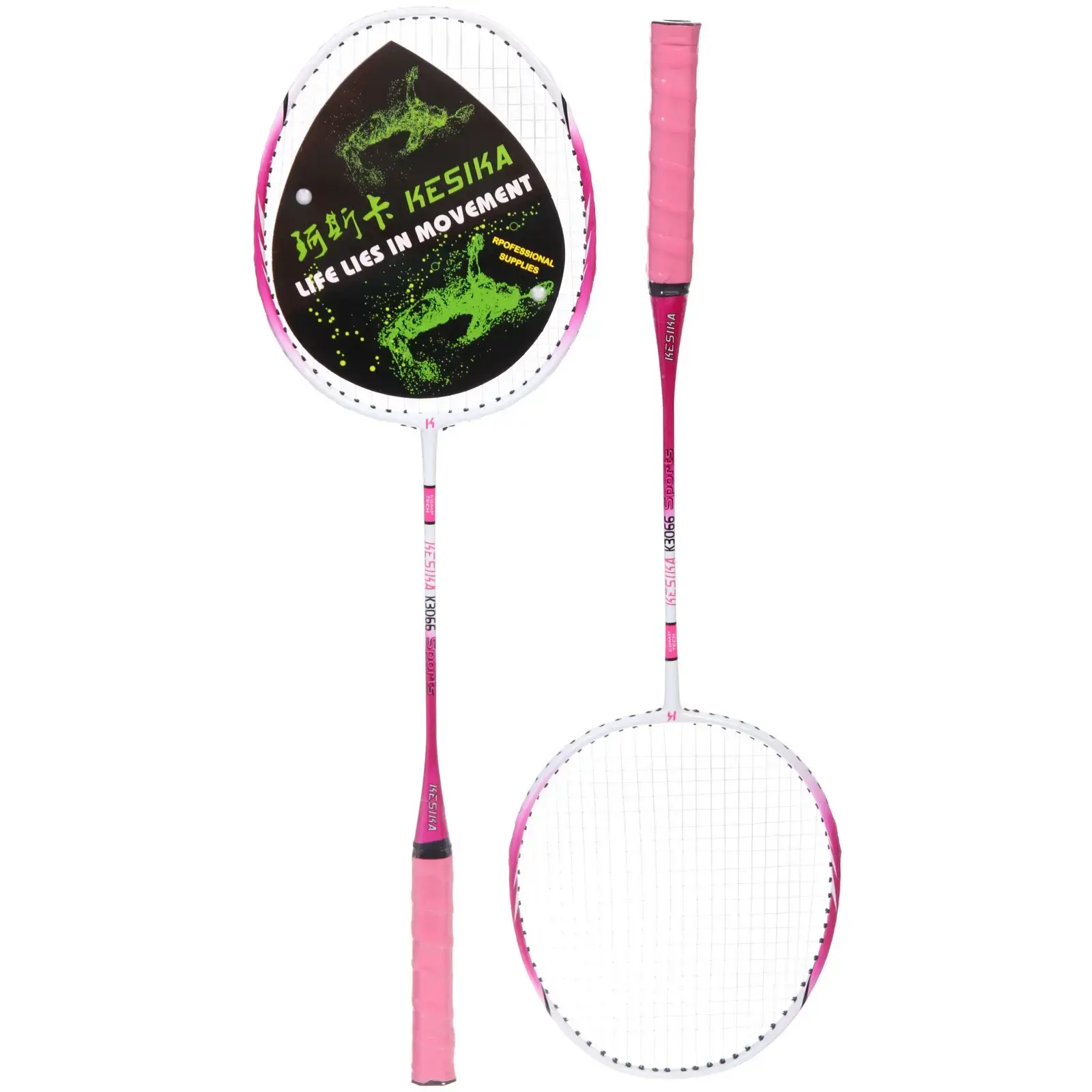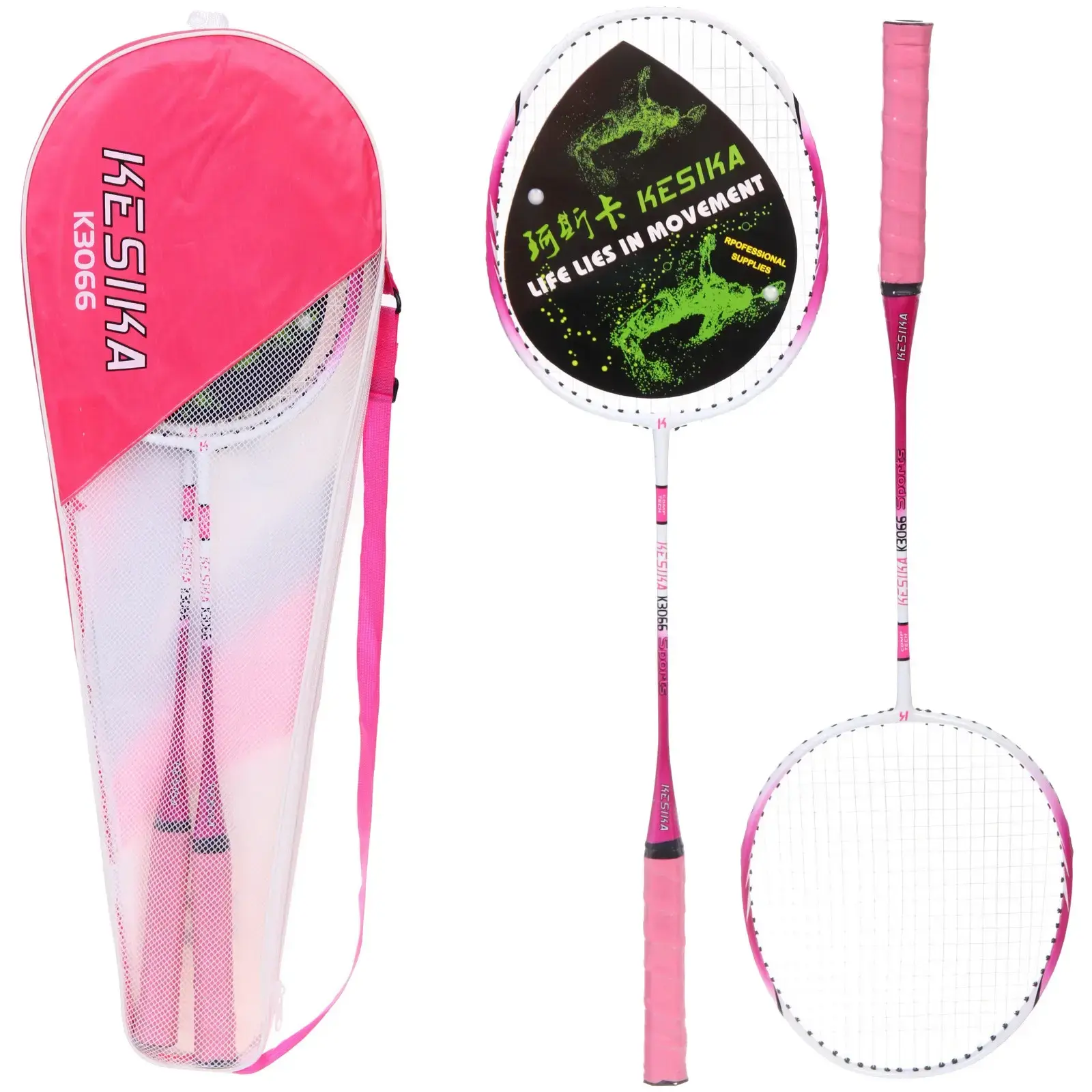 Набор для бадминтона «KESIKA K-3066»: 2 ракетки 65 см, чехол, металл, розовый