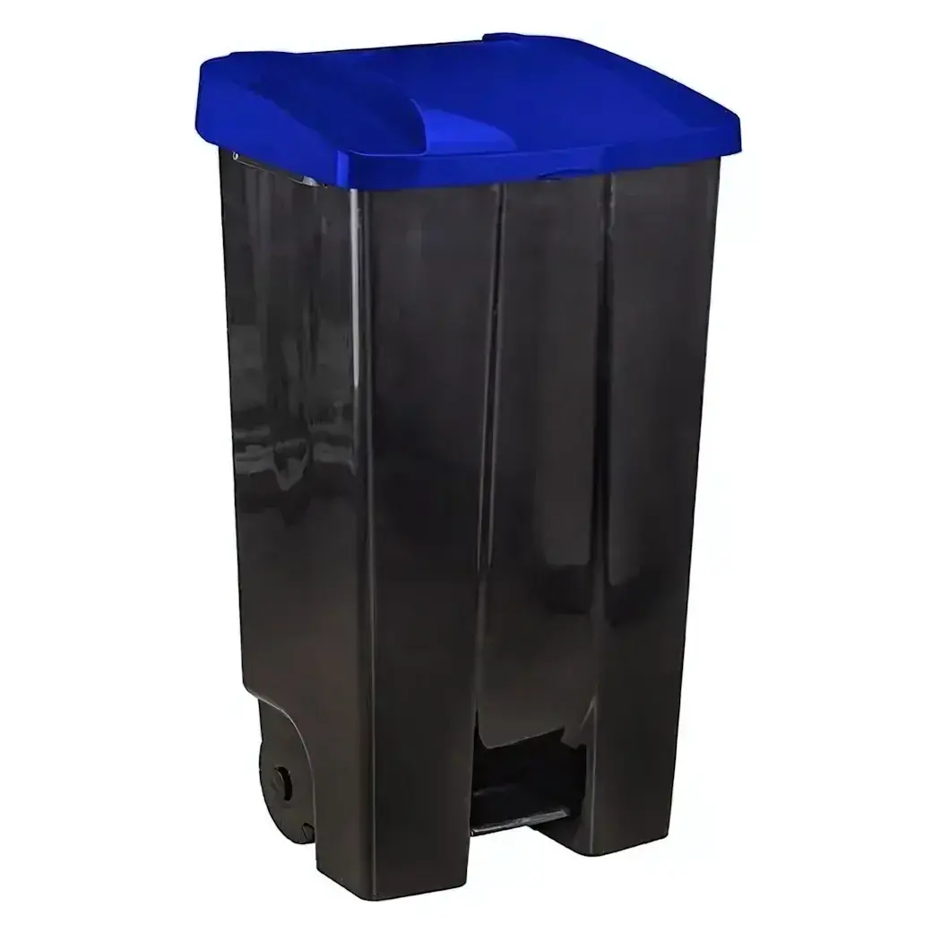 Бак мусорный 110л с педалью и колесами, пластик, синий, для дома и улицы