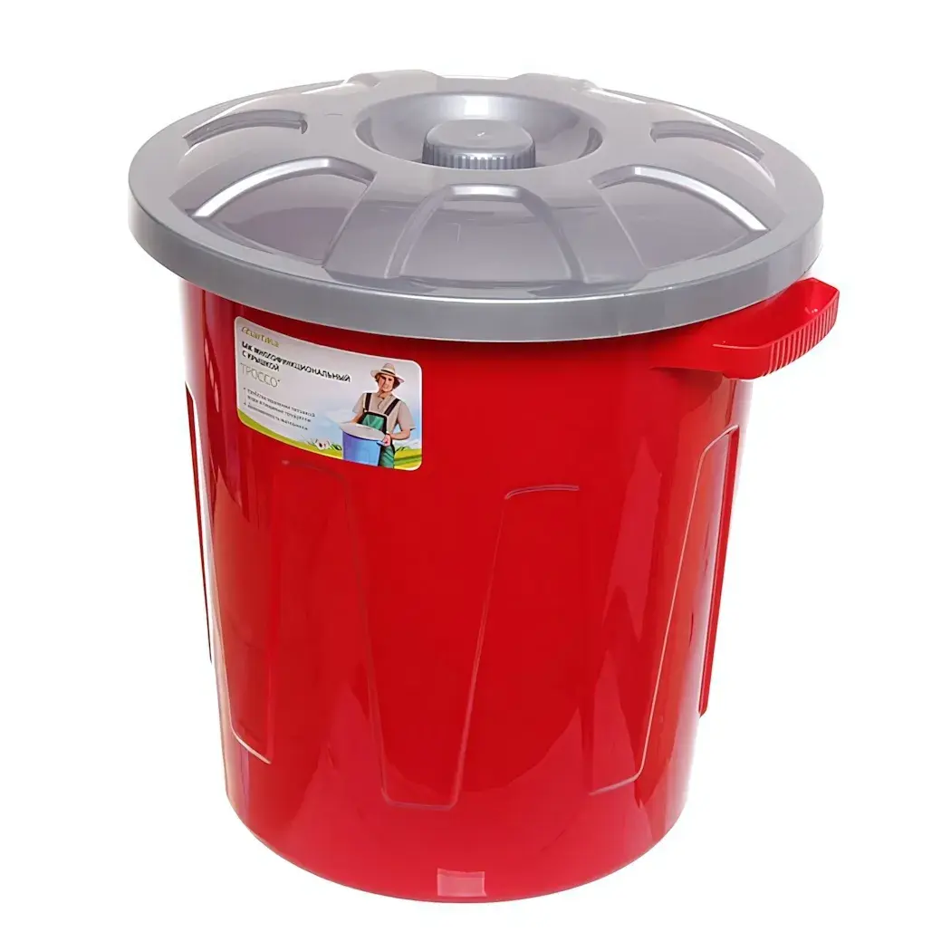 Бак пластиковый 24л с крышкой, красный/серый, для дома и дачи