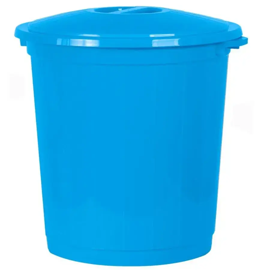 Бак пластиковый 50л с крышкой, голубой, для мусора и хранения