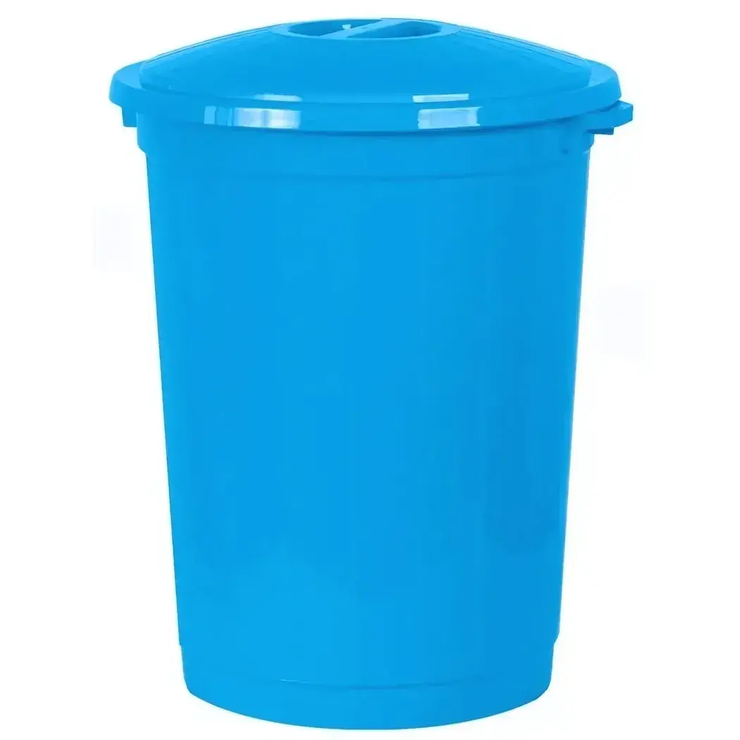 Бак для мусора 85л с крышкой, пластик, голубой, цилиндрическая форма