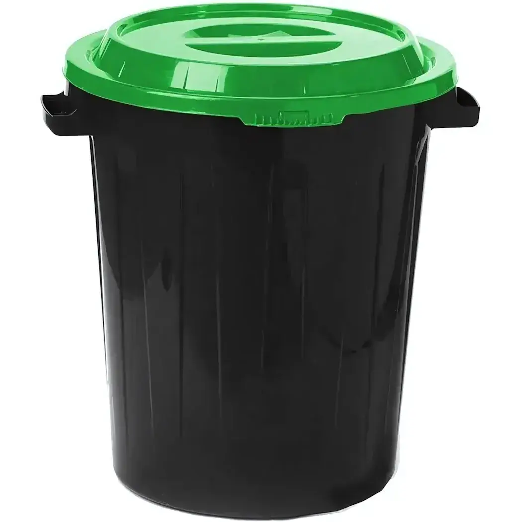 Мусорный бак Idea 90л с крышкой, черный корпус/зеленая крышка, пластик