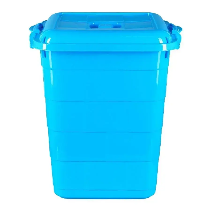 Прямоугольная форма с вытянутой задней стенкой позволяет компактно размещать баки вдоль стен. Гладкая внутренняя поверхность упрощает очистку, а герметичность крышки защищает от протекания жидкостей. Голубой цвет корпуса сохраняет визуальную чистоту даже при интенсивной эксплуатации.