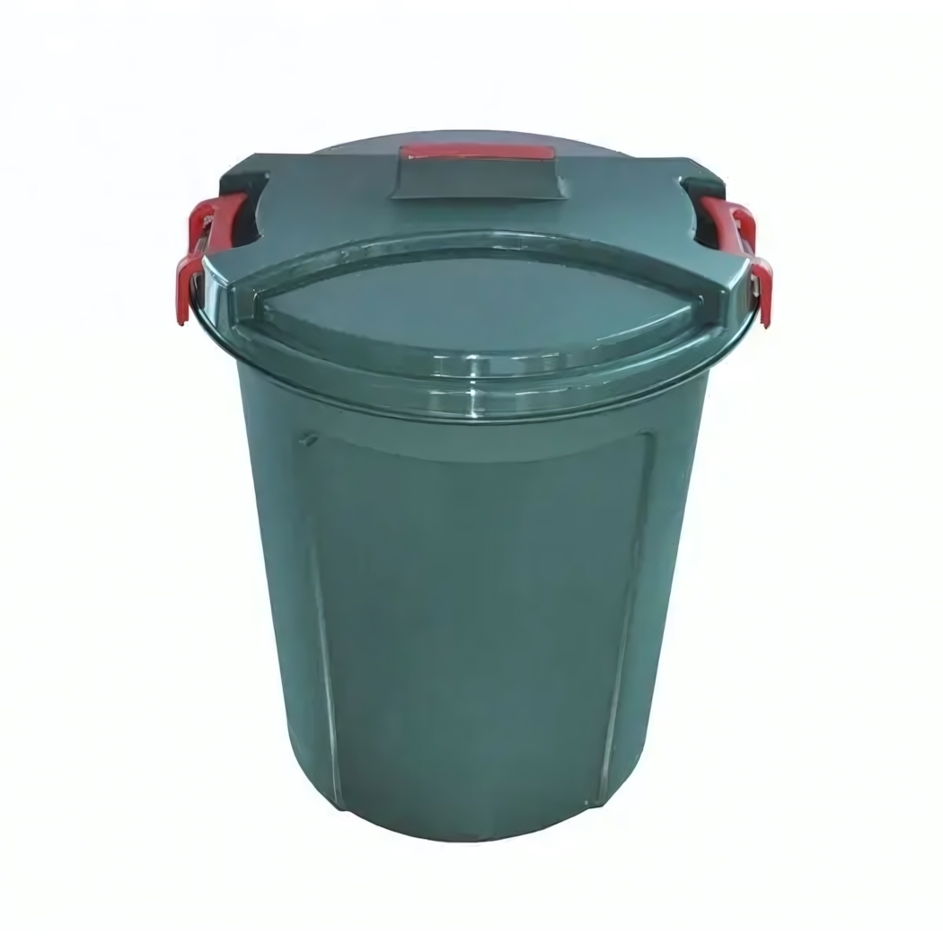 Бак для мусора «Геркулес» 100 л, пластик, зелёный с красными защёлками, крышка