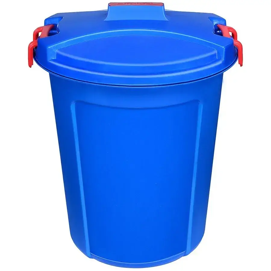 Бак для мусора пластиковый 70 л с герметичной крышкой, синий, защелки красные