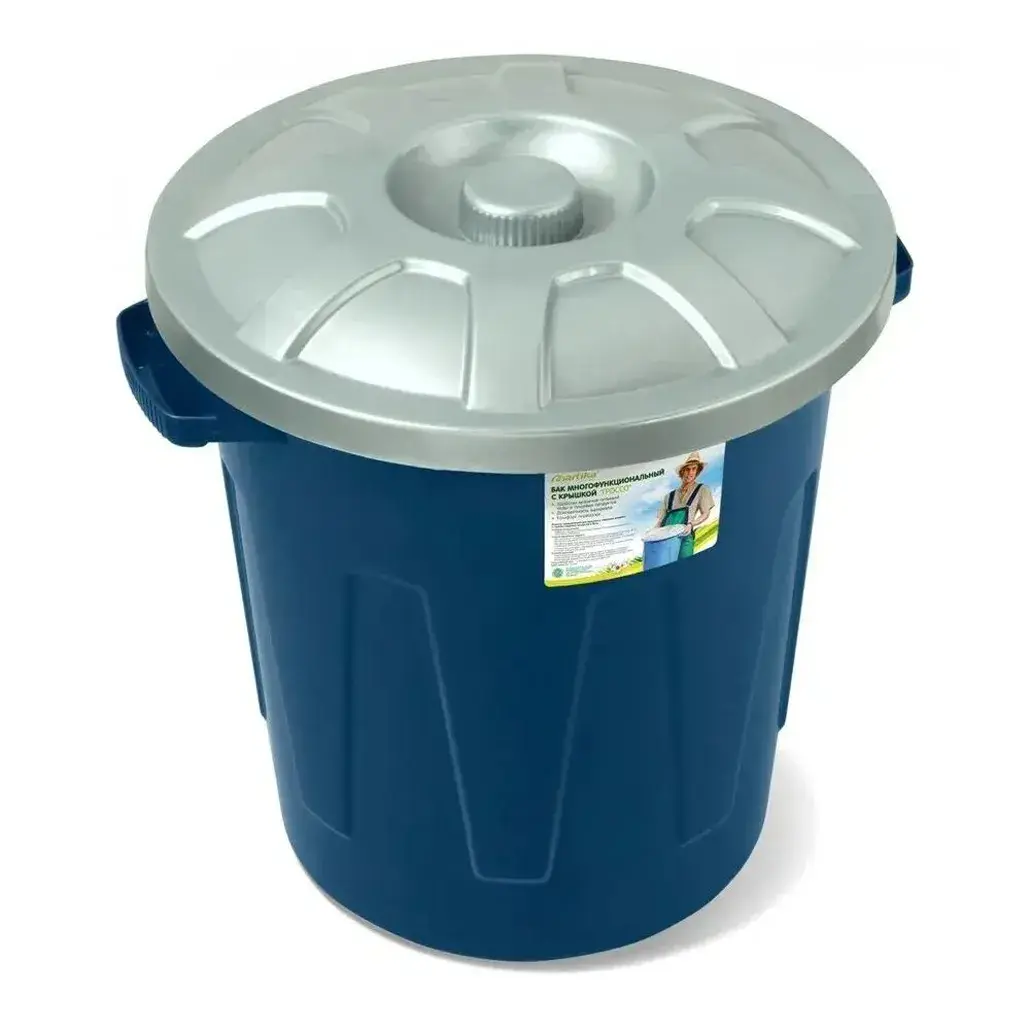 Круглая форма ёмкости с диаметром 40 см оптимальна для компактного размещения. Гладкая внутренняя поверхность упрощает очистку, а устойчивое дно предотвращает опрокидывание. Синий корпус с фирменной наклейкой сохраняет презентабельный вид при интенсивной эксплуатации.