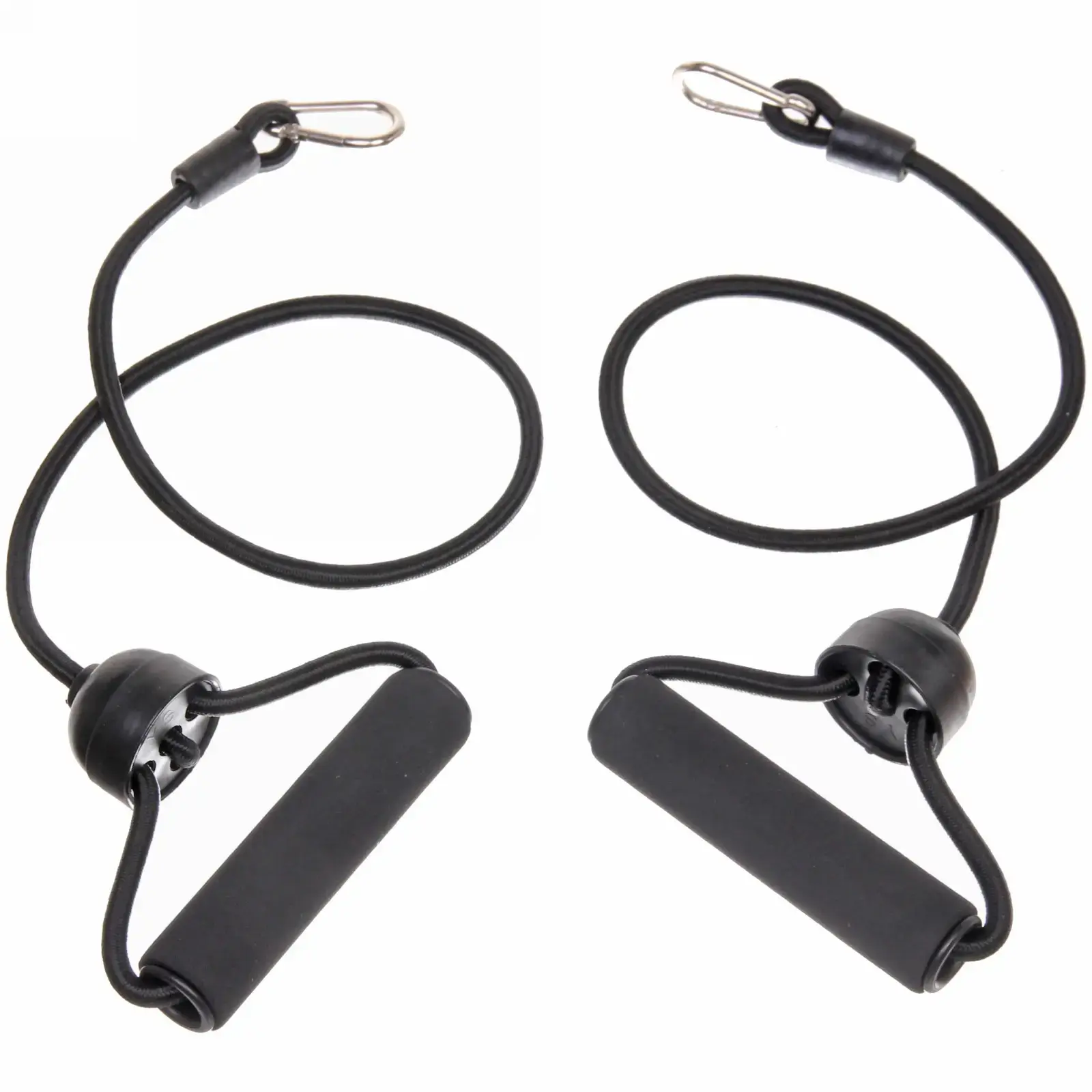 Выполняйте 20-минутные сессии 3 раза в неделю: стоя на одной ноге, делая приседы с эспандерами или отжимаясь от платформы. Рифлёные ручки эспандеров обеспечивают надёжный хват, а эластичные трубки создают сопротивление до 15 кг.