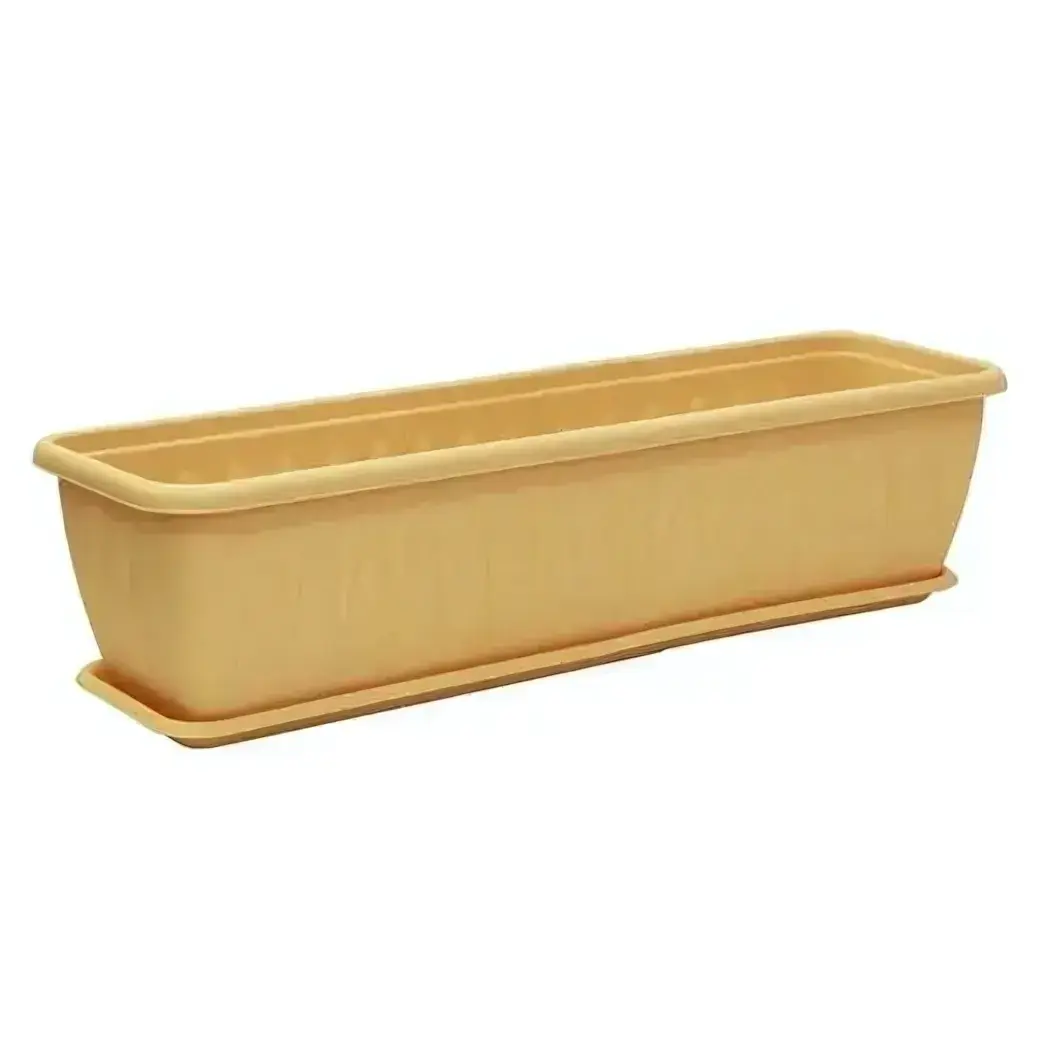 Балконный ящик «Алиция» 80 см с поддоном, матовая текстура, цвет белая глина, 80х15.5х18.5 см