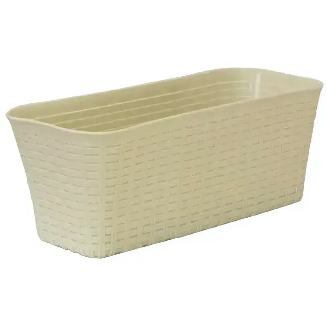 Балконный ящик "РОТАНГ 400" белый ротанг, 38.5х18см, легкий и прочный