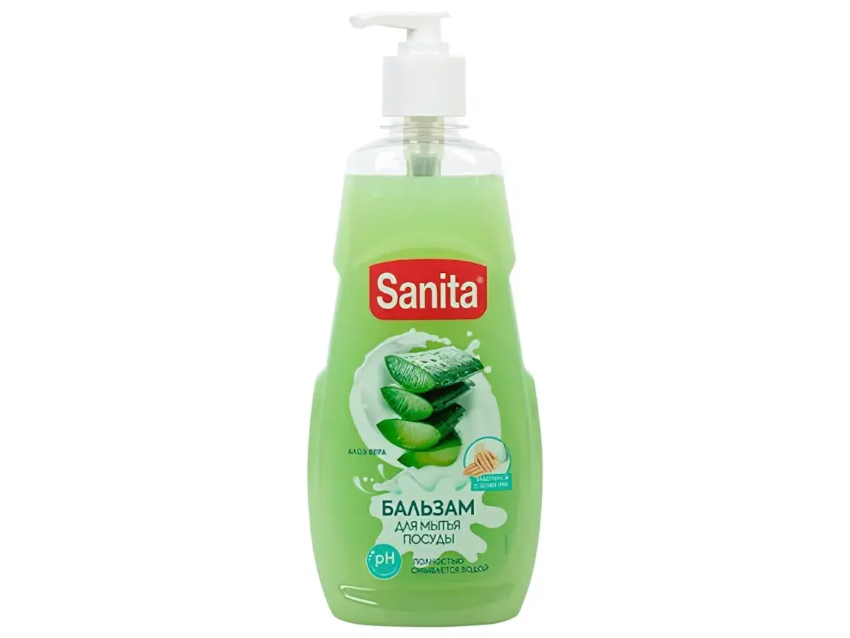 Бальзам для мытья посуды Sanita pure, 450г, с алоэ вера, бережный для рук