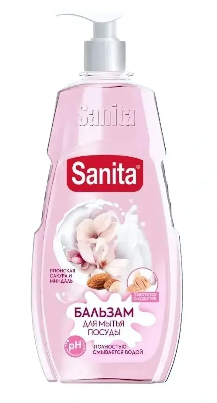 Эффективный бальзам для мытья посуды SANITA pure 450г с ароматами японской сакуры и миндаля