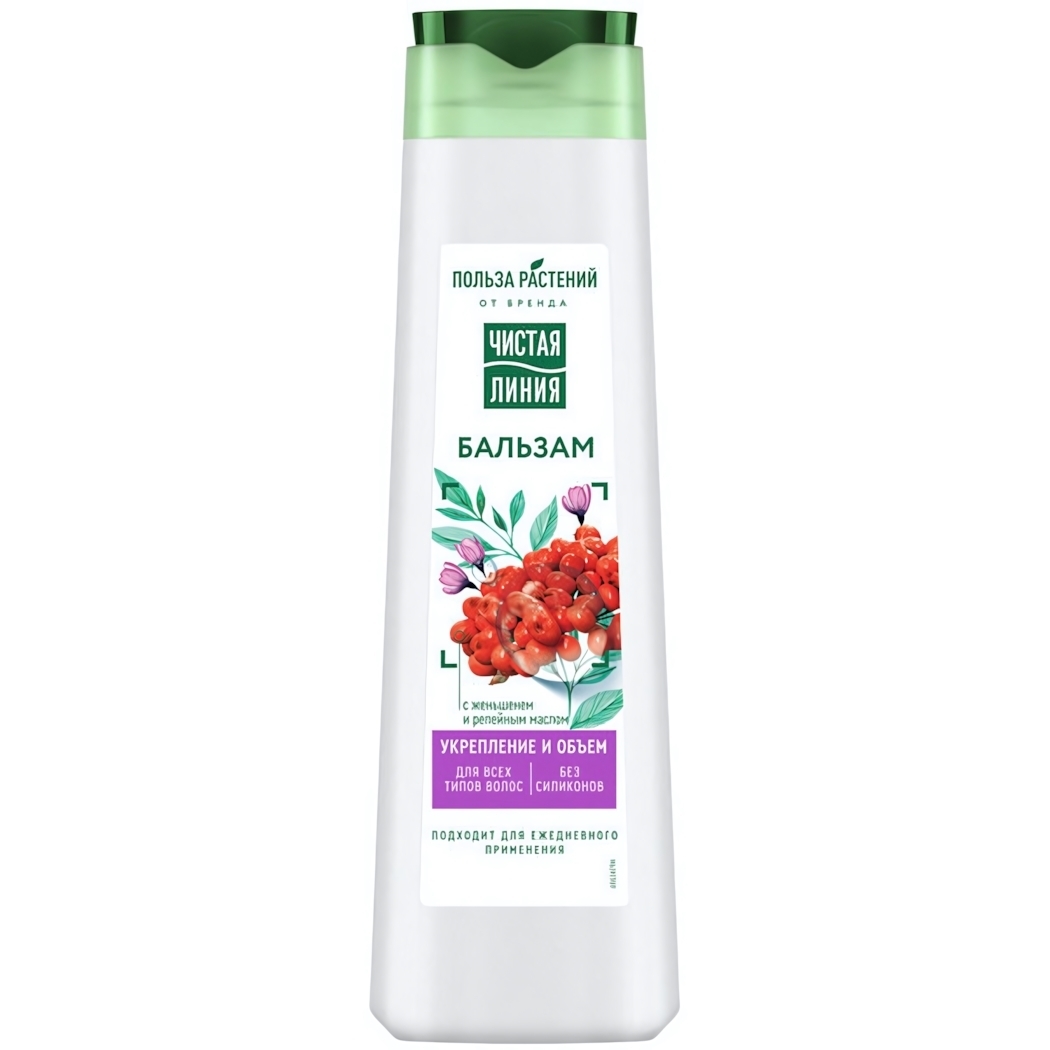 Бальзам для волос ЧИСТАЯ ЛИНИЯ «Польза растений» — это идеальное решение для тех, кто стремится к здоровым и объемным волосам. Благодаря уникальной формуле, основанной на экстрактах 7 трав, этот бальзам обеспечивает надежное укрепление и придает волосам естественный объем. Он подходит для всех типов волос и не содержит силиконов, что делает его безопасным для ежедневного использования.