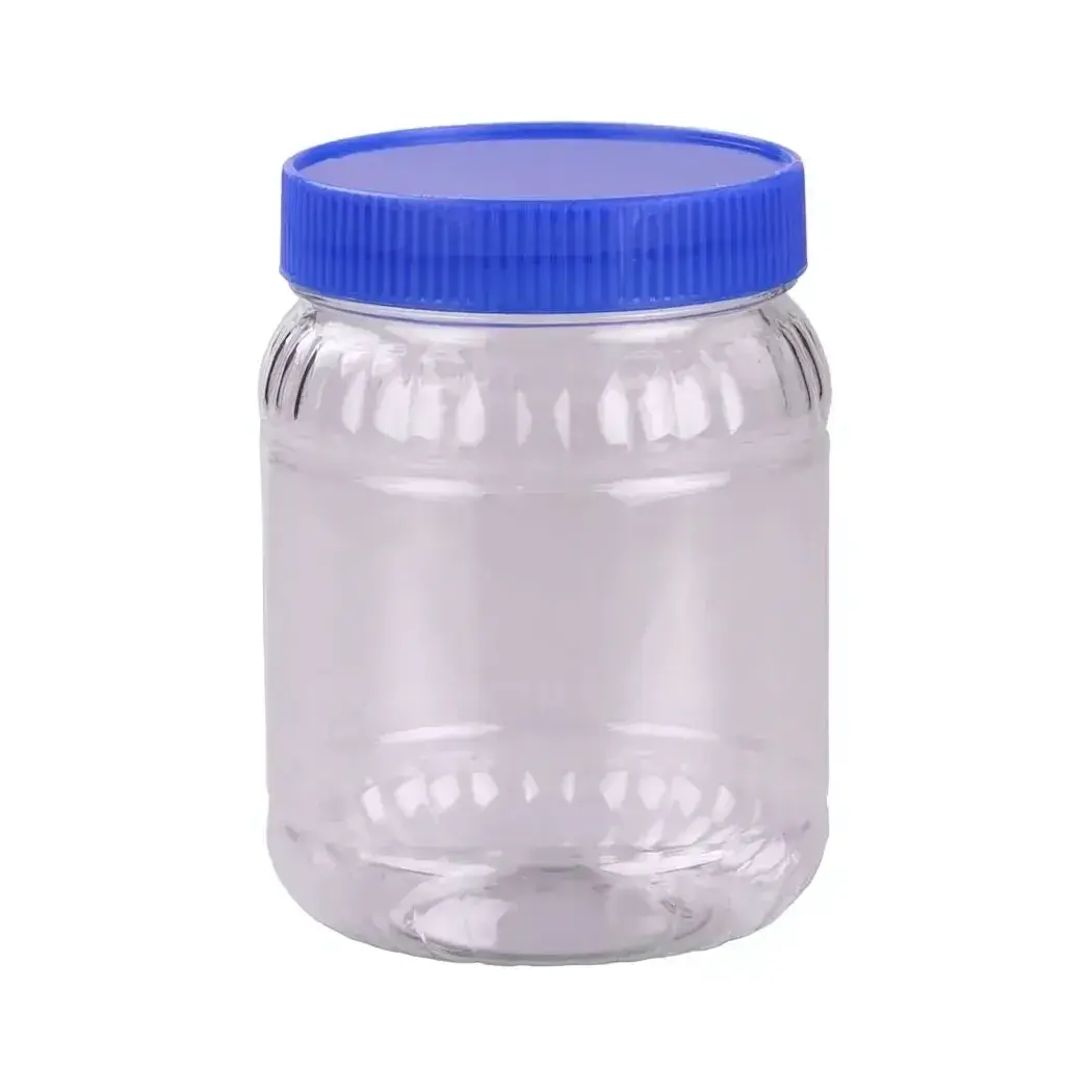 Банка пластиковая 0,7л с синей крышкой, ПЭТ, герметичная для сыпучих продуктов