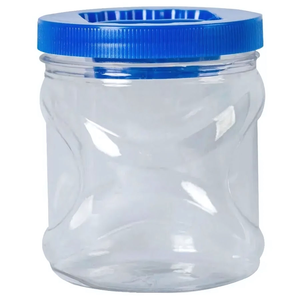 Объём 1 литр оптимален для повседневного использования. Удобные пропорции банки позволяют размещать её на полках стандартных кухонных шкафов. Прозрачный корпус из качественного пластика сохраняет первоначальный вид даже при активной эксплуатации. Синяя крышка создаёт контрастное цветовое сочетание, облегчая визуальный поиск в шкафу.