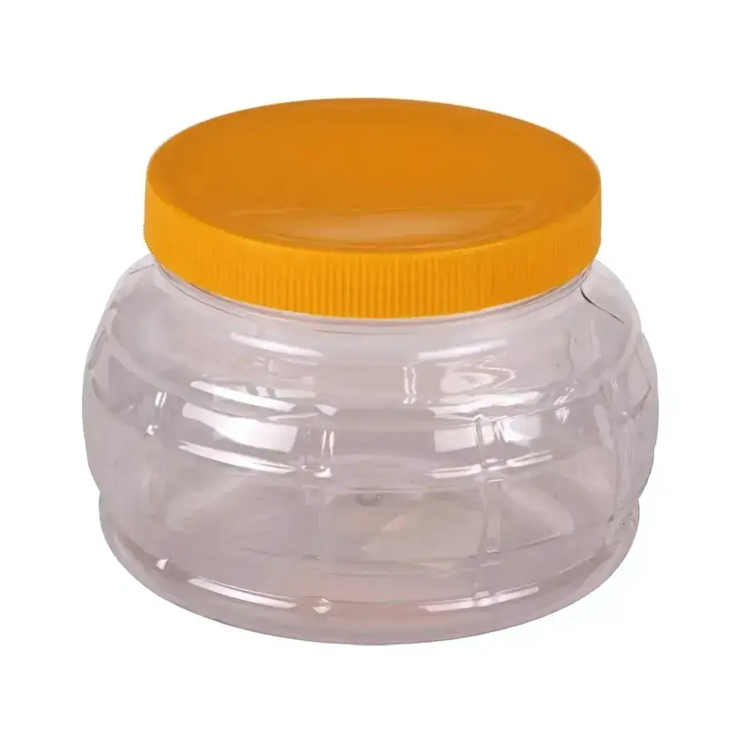 Банка Бочонок 1л ПЭТ, прозрачная, с желтой крышкой, для сыпучих продуктов