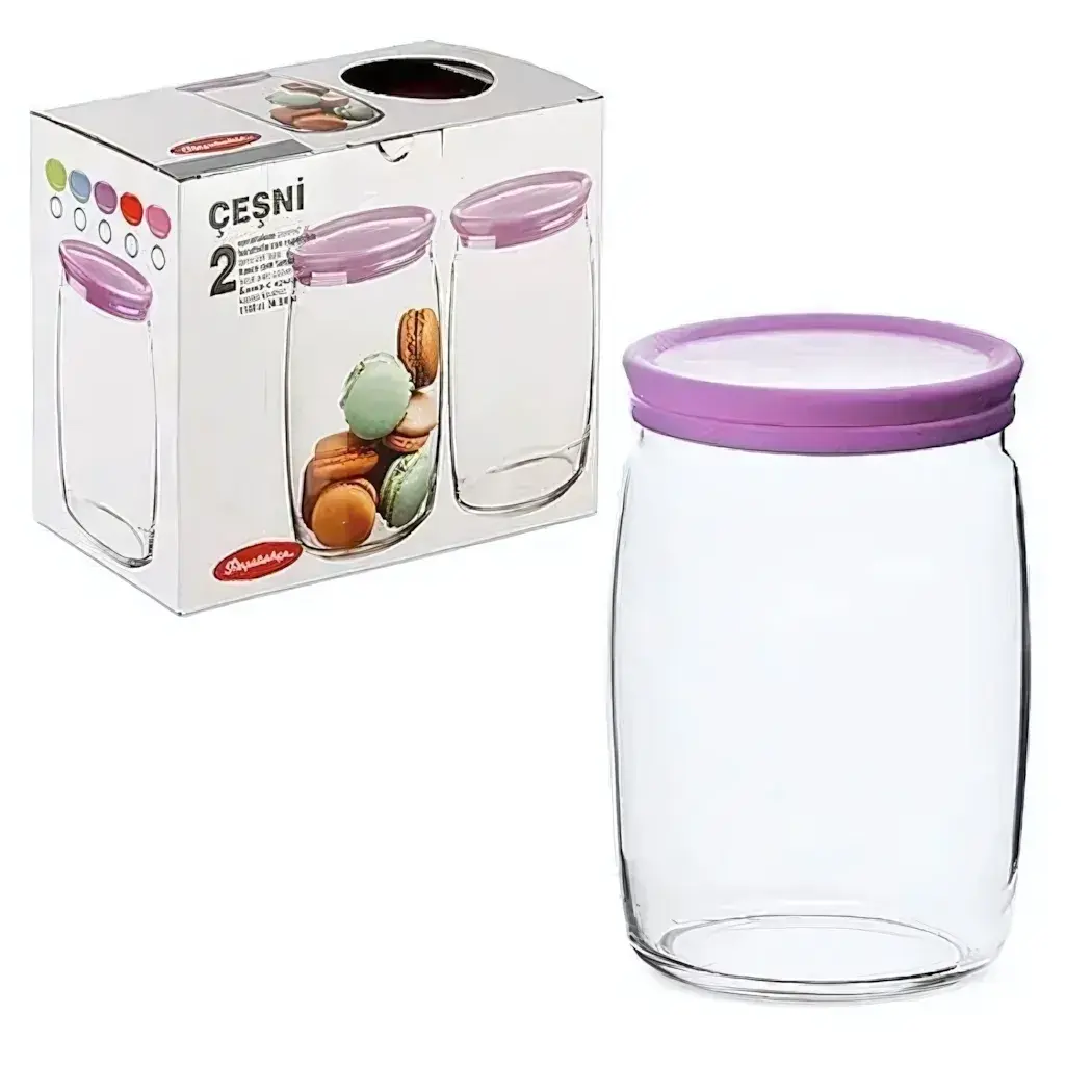 Ощутите комфорт и порядок на своей кухне с комплектом из двух прочных стеклянных банок "CESNI", объёмом 1100 мл каждая. Герметичные крышки сиреневого цвета из пластика защищают содержимое от влаги и запахов, позволяя сохранить свежесть круп, макарон, сахара, орехов и других любимых ингредиентов. Широкое горло обеспечивает удобное наполнение, а округлая форма смотрится эстетично и современно.