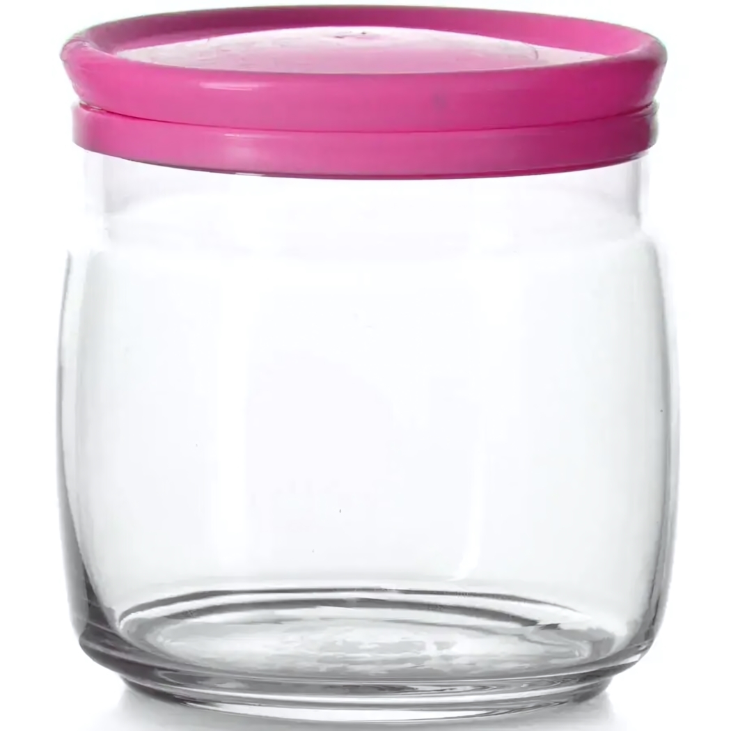 Стеклянная банка 500 мл с пластиковой крышкой, герметичная, цвет крышки в ассортименте