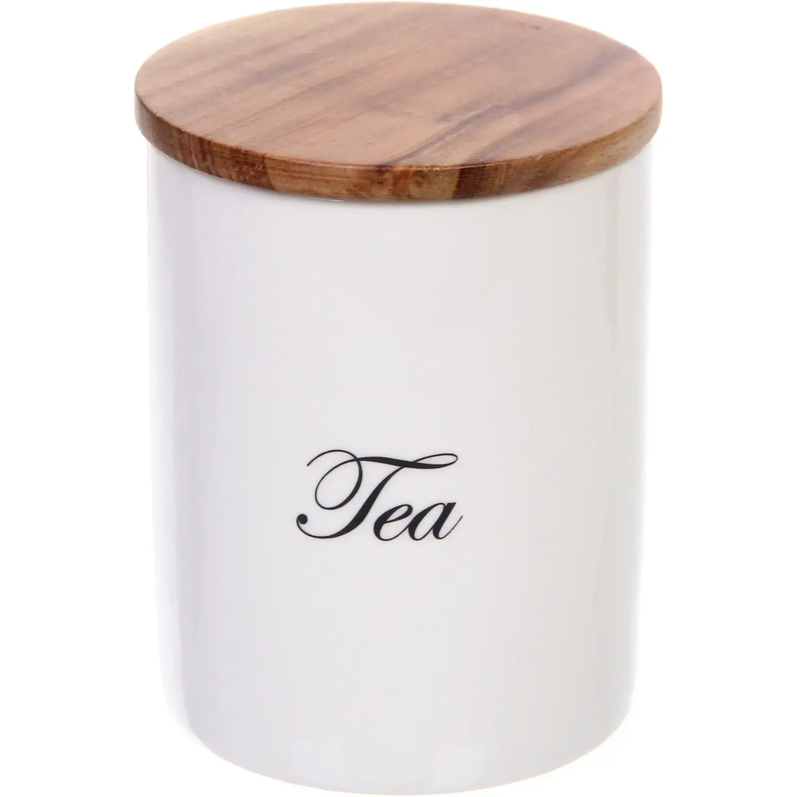 Размеры банки составляют 10х13см, что делает ее компактной и удобной для размещения как на полке, так и на столешнице. Гладкая керамическая поверхность легко очищается, а стильная надпись 'Tea' служит дополнительным декоративным элементом.