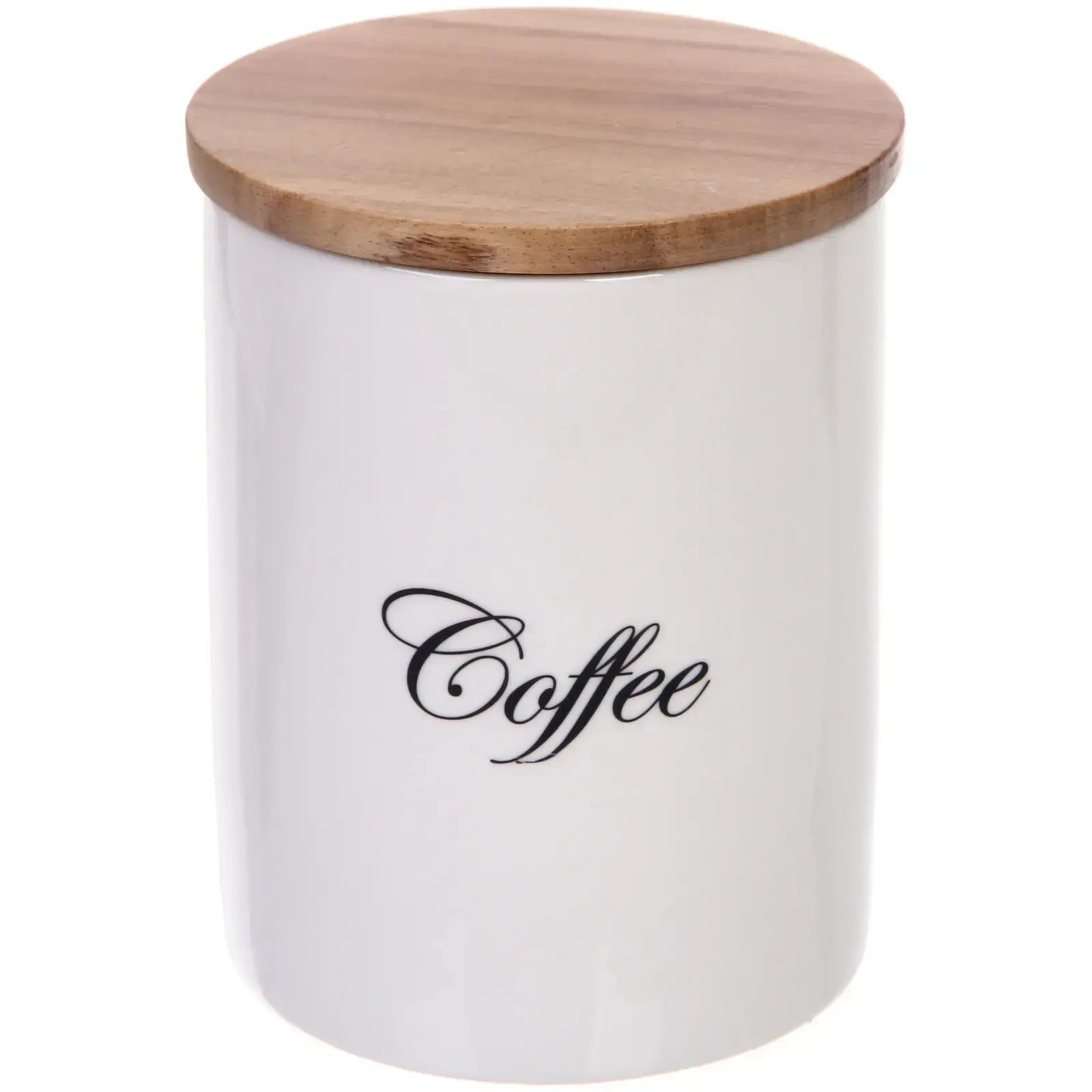 Банка для кофе «White Magic», керамика с деревянной крышкой, 650 мл, 10х13 см, герметичное хранение