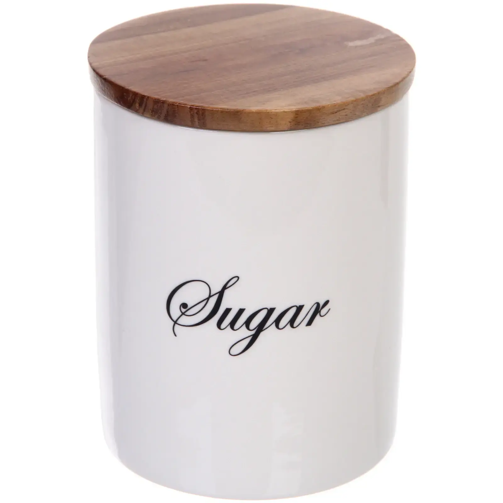Банка для сахара керамическая 'White magic', 650мл, белая/дерево, 10*13см