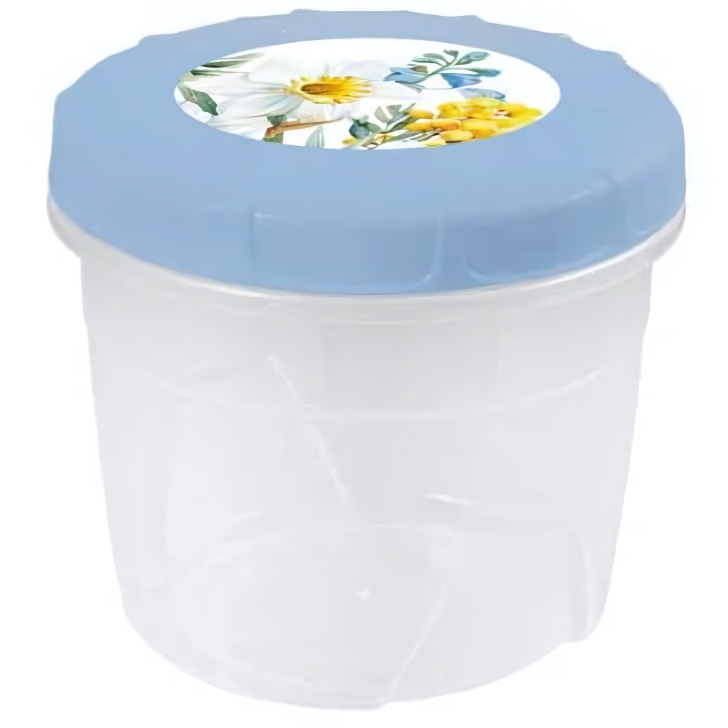 Объём 0,3 л делает банку удобной для хранения небольших порций и экономии пространства в шкафу или холодильнике. Голубая крышка и цветочный рисунок гармонично сочетаются с классической кухонной посудой. Надёжный пластик устойчив к повседневным нагрузкам и подходит для регулярного использования дома, на даче или в офисе.