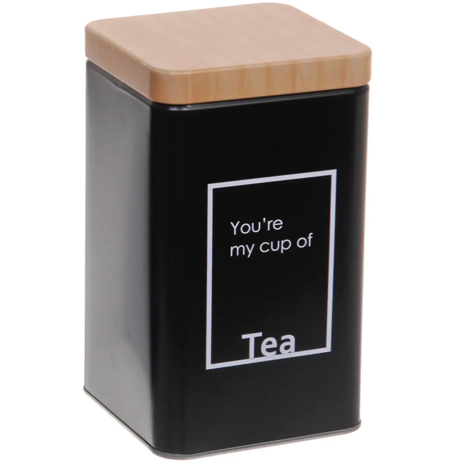 - Стильный дизайн: Черный цвет с белыми надписями и деревянная крышка придают банке современный вид.