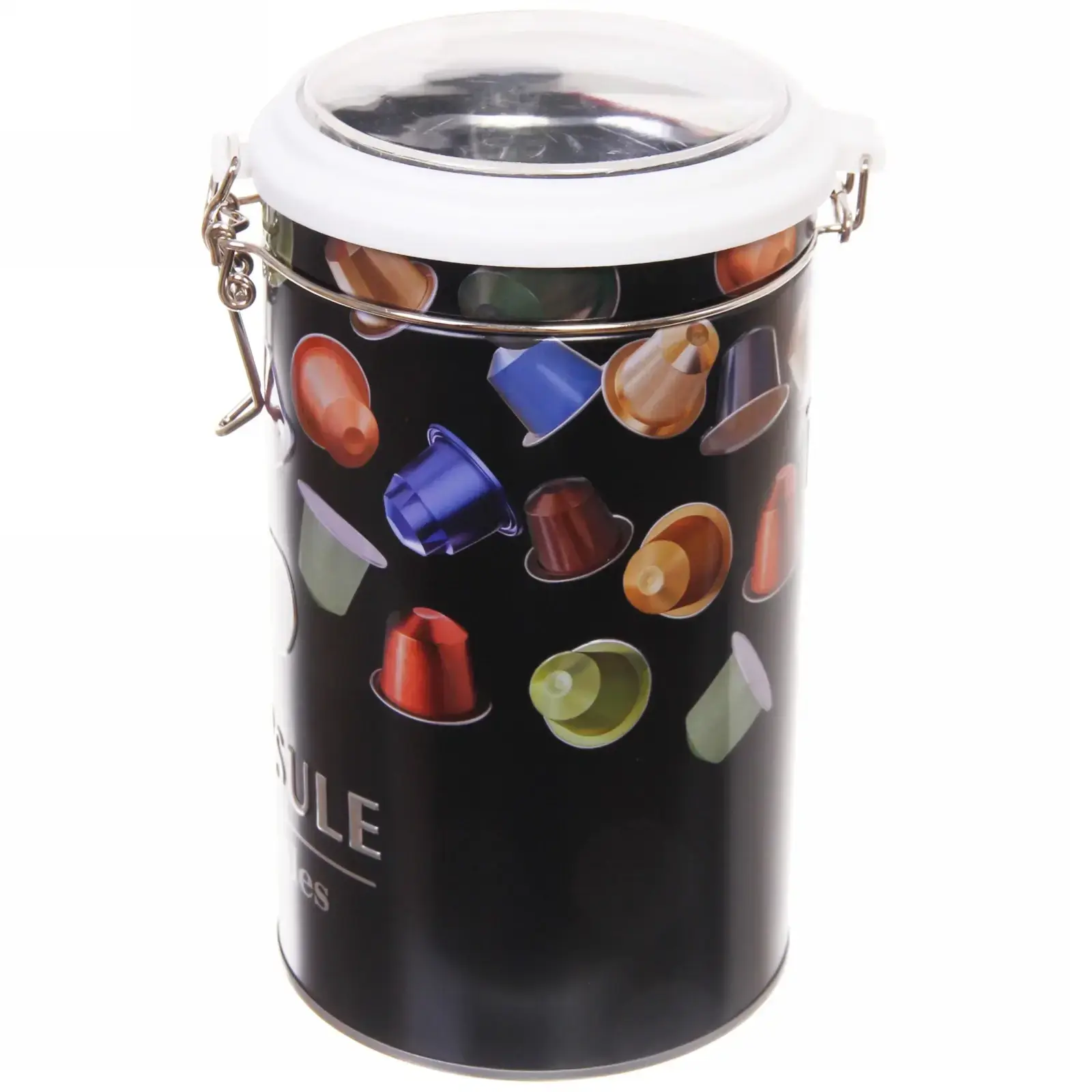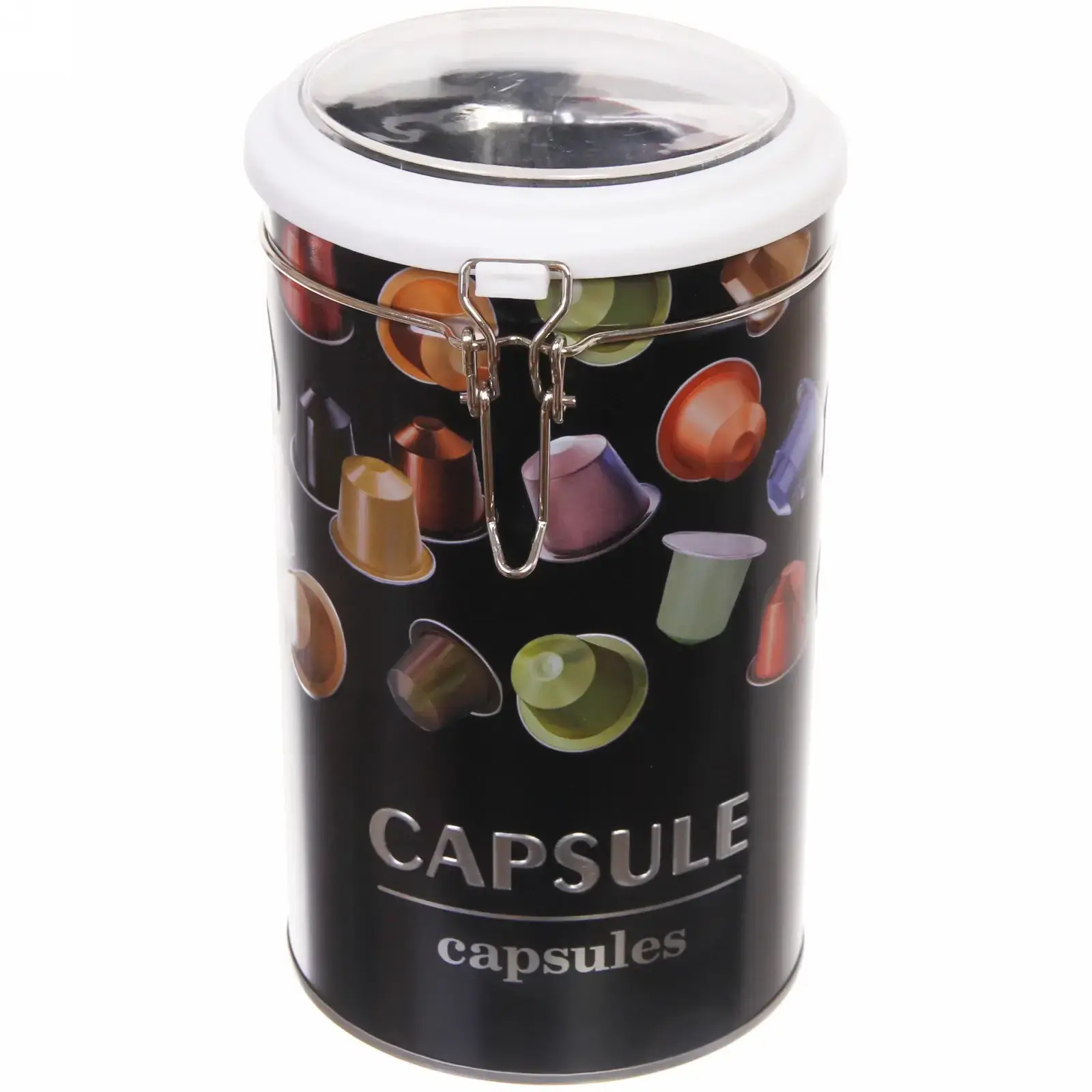 Металлическая банка с герметичным зажимом сохранит аромат и свежесть ваших капсул, превратив кухню в стильное пространство. Прозрачная крышка позволяет быстро найти нужный сорт кофе, а компактный дизайн экономит место на рабочей поверхности.