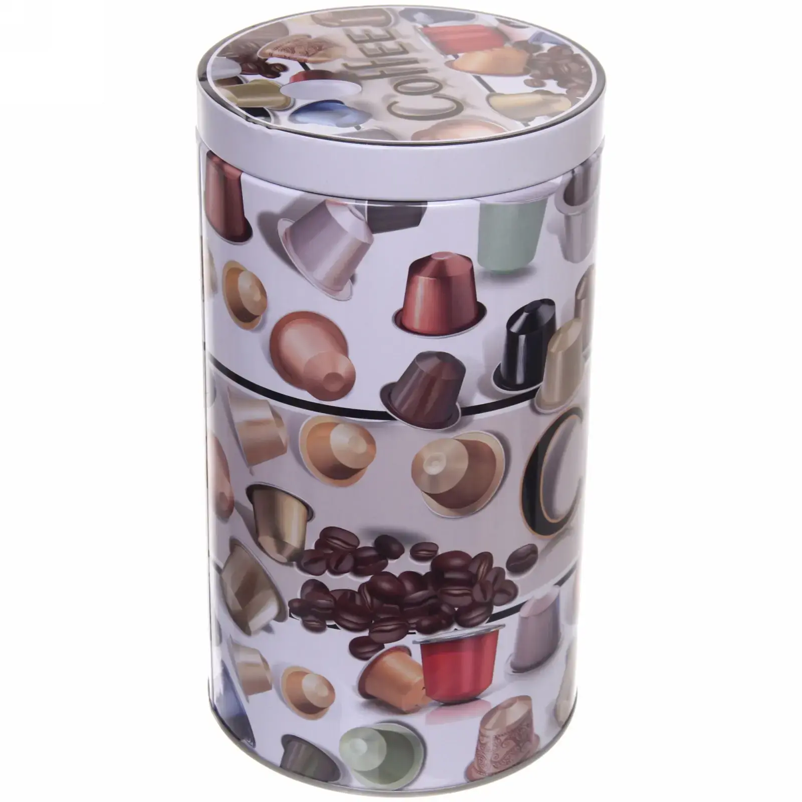Банка выполнена из жестяного материала, что гарантирует ее прочность и долговечность. Объем 1800 мл позволяет хранить достаточное количество капсул, а округлая форма делает ее удобной для использования. Размеры банки идеально подходят для размещения на кухонной полке или столе.