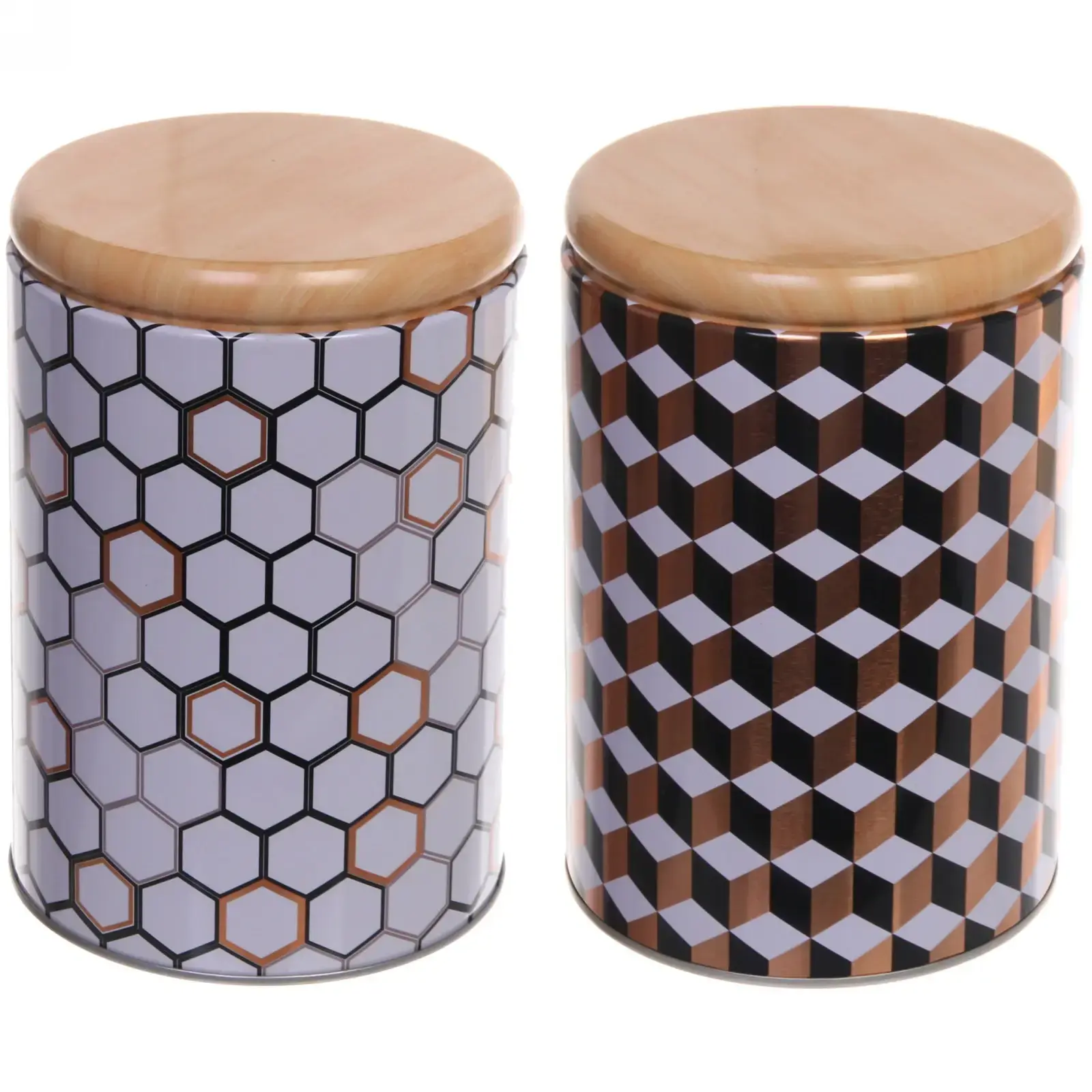 Банка для сыпучих продуктов «Geometry», герметичная, 1400мл, жесть, деревянная крышка, 11х15см
