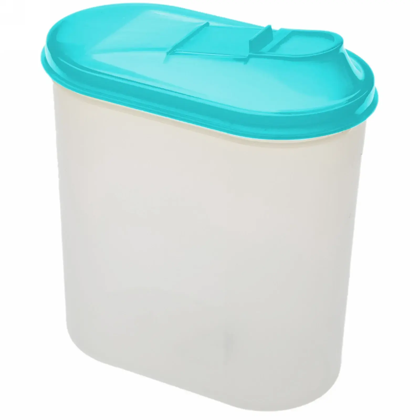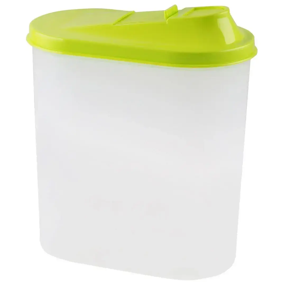 Банка для сыпучих продуктов 2л с герметичной крышкой, пищевой пластик, прямоугольная форма, прозрачный корпус
