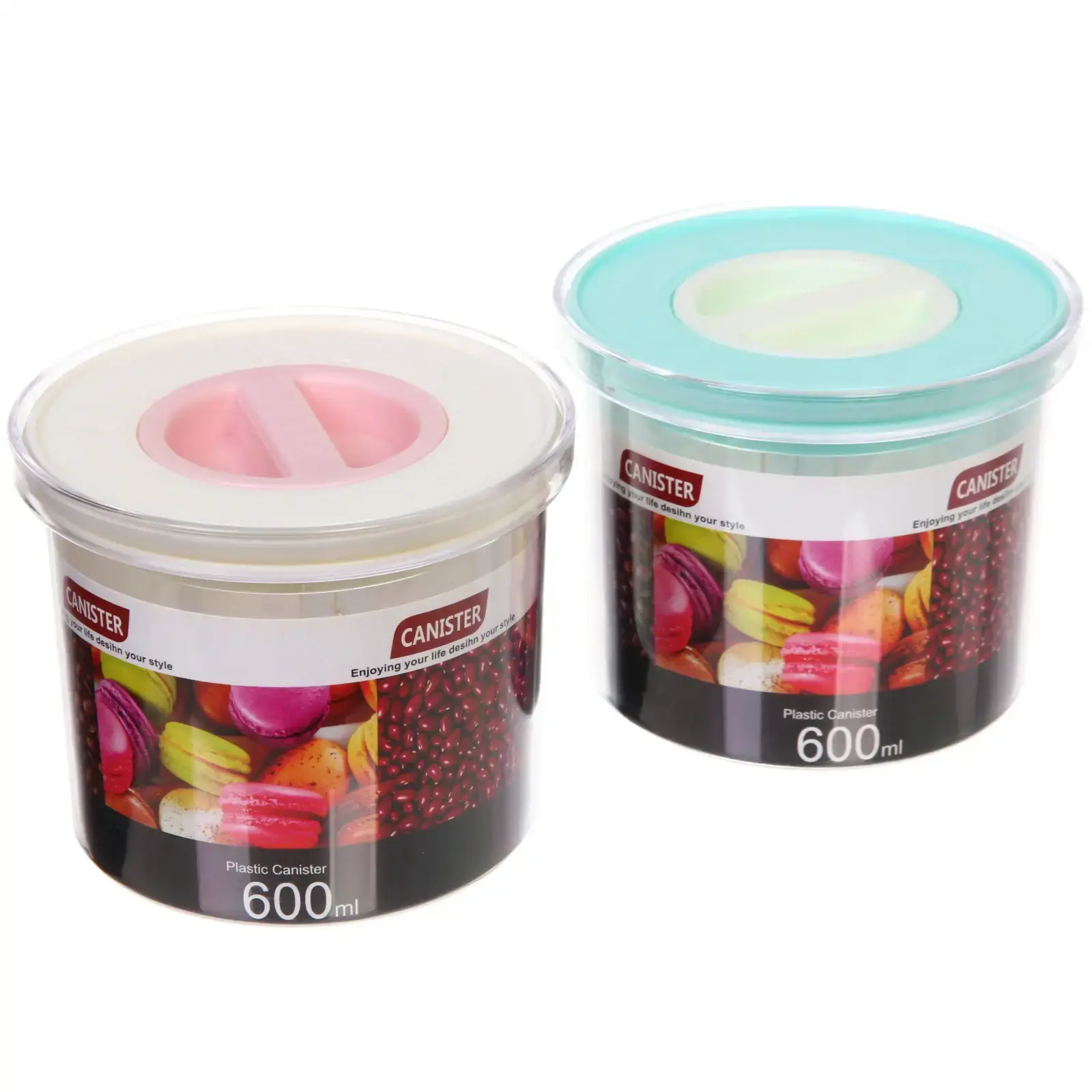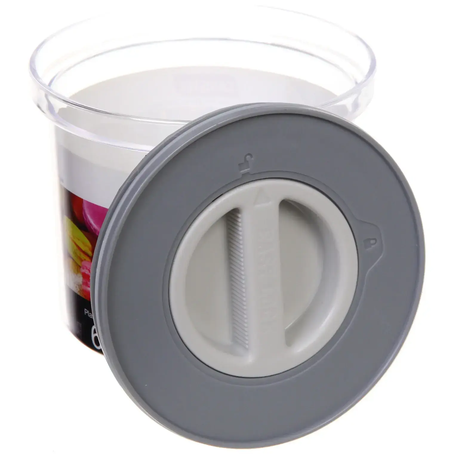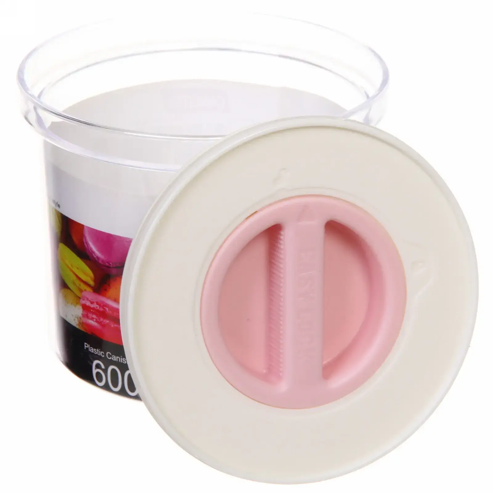 Размеры банки составляют 11 см в диаметре и 10 см в высоту, что позволяет удобно размещать ее на полках или в шкафах. Изготовленная из безопасного пластика, она легко моется и не впитывает запахи. Объем в 600 мл идеально подходит для хранения различных продуктов, а стильный дизайн делает ее отличным дополнением к вашей кухонной утвари.