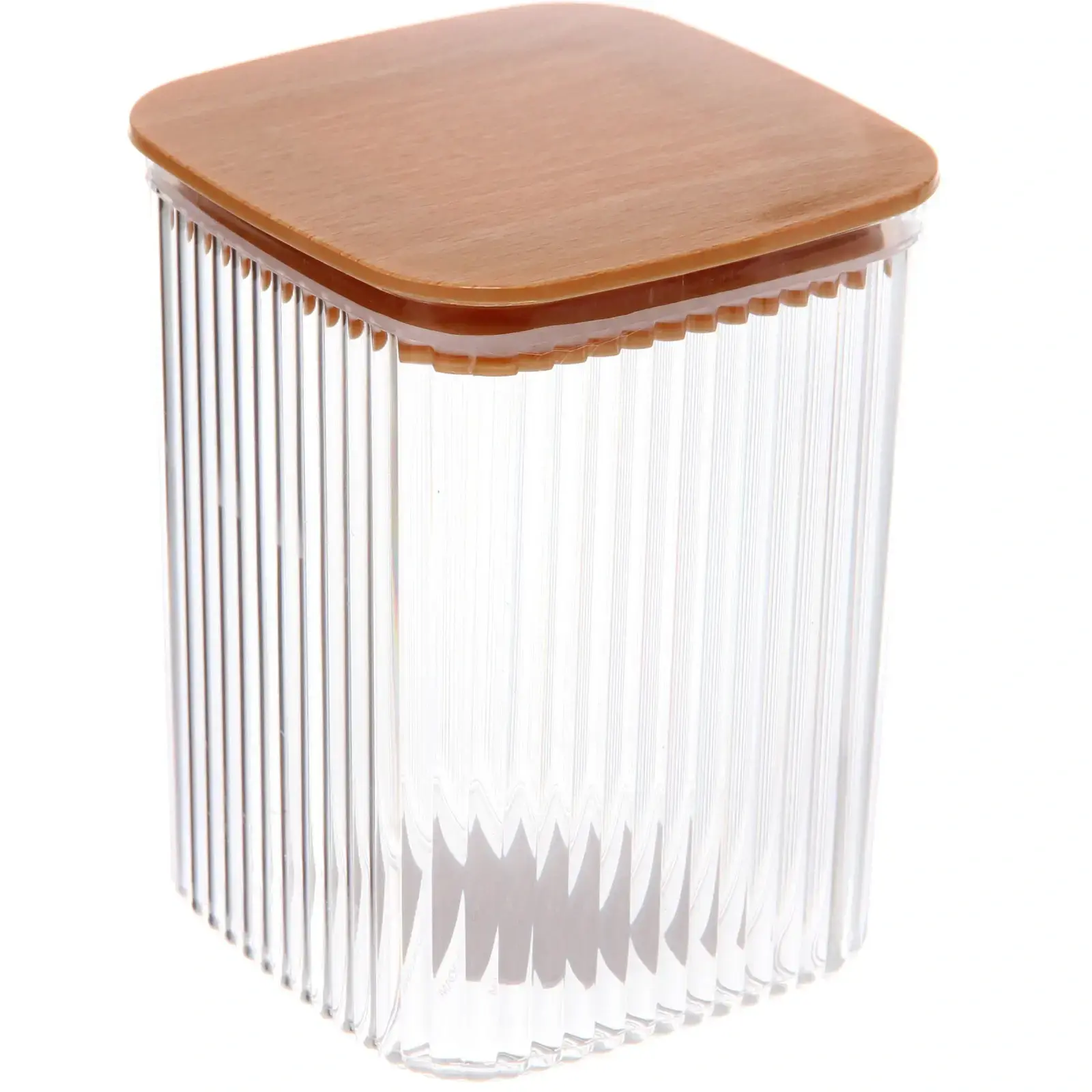 Пластиковая банка «BAMBOO» объемом 800мл — это идеальное решение для хранения ваших любимых продуктов. Она сочетает в себе стильный дизайн и практичность, что делает её незаменимым помощником на кухне. Прозрачный контейнер позволяет легко видеть содержимое, а крышка, выполненная из материала, имитирующего дерево, добавляет нотку элегантности.