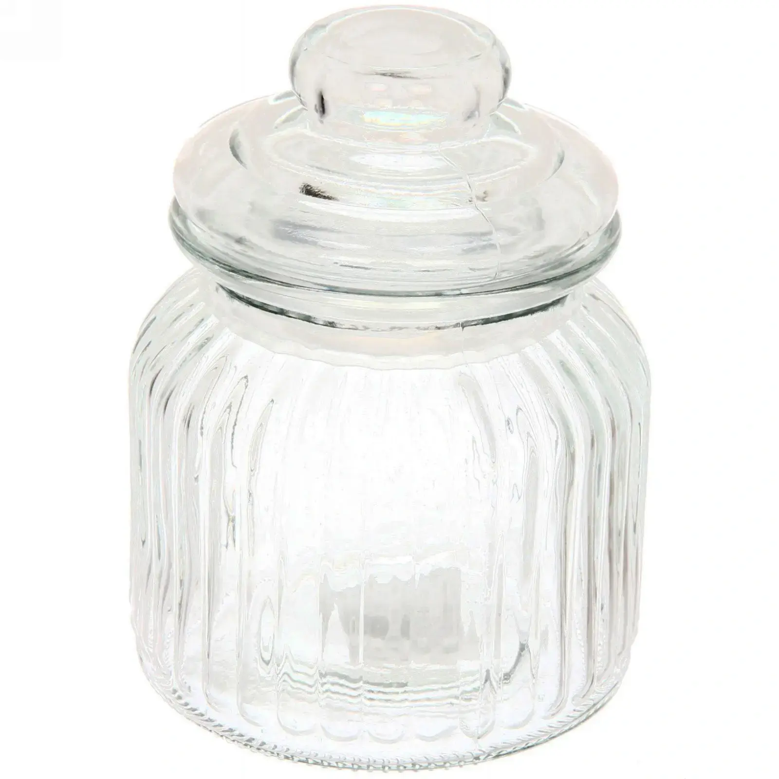 Банка стеклянная для сыпучих продуктов 1100 мл с герметичной крышкой, рифленая поверхность
