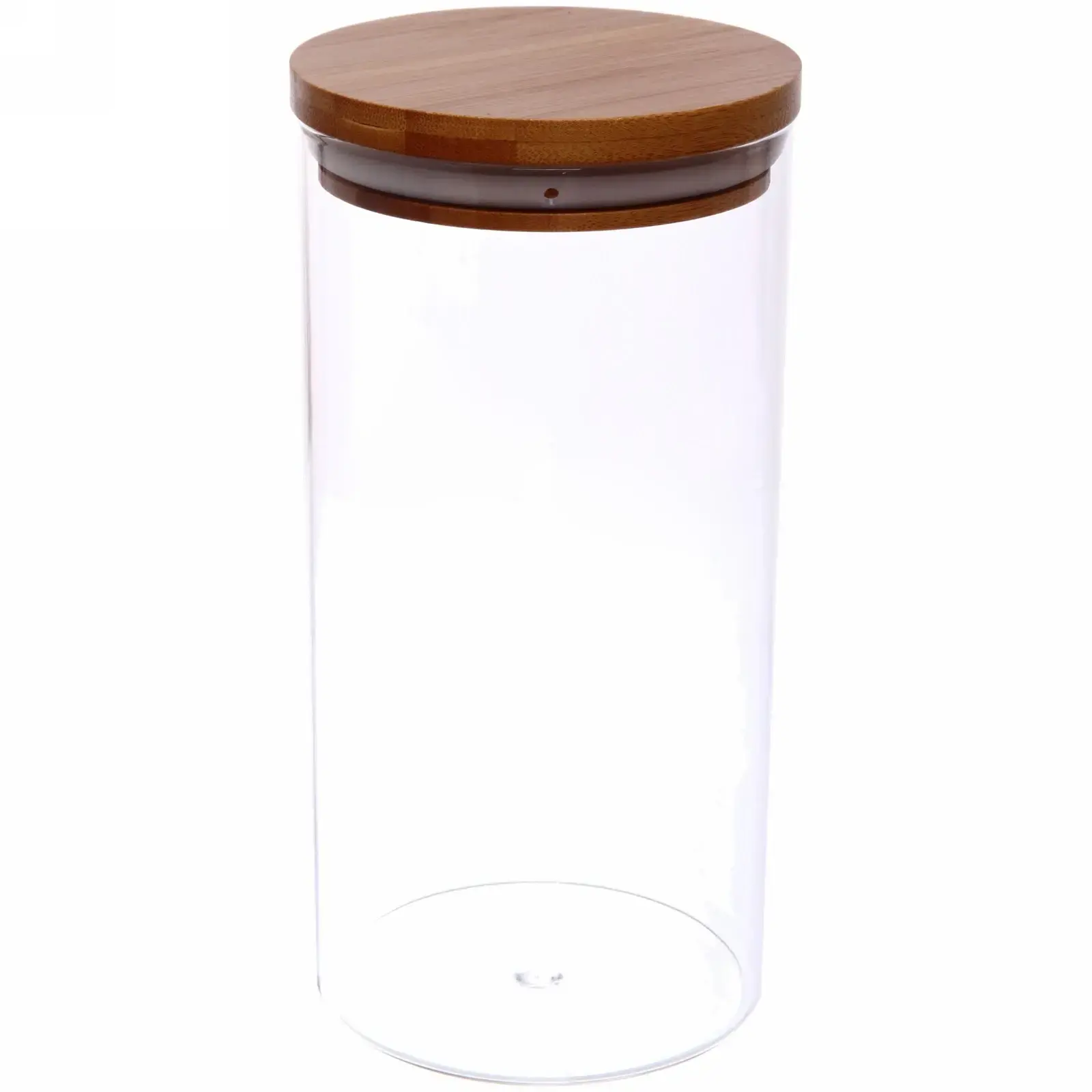 Банка «Хай-Тек» стеклянная 1300 мл с бамбуковой крышкой, герметичная, 10х24 см