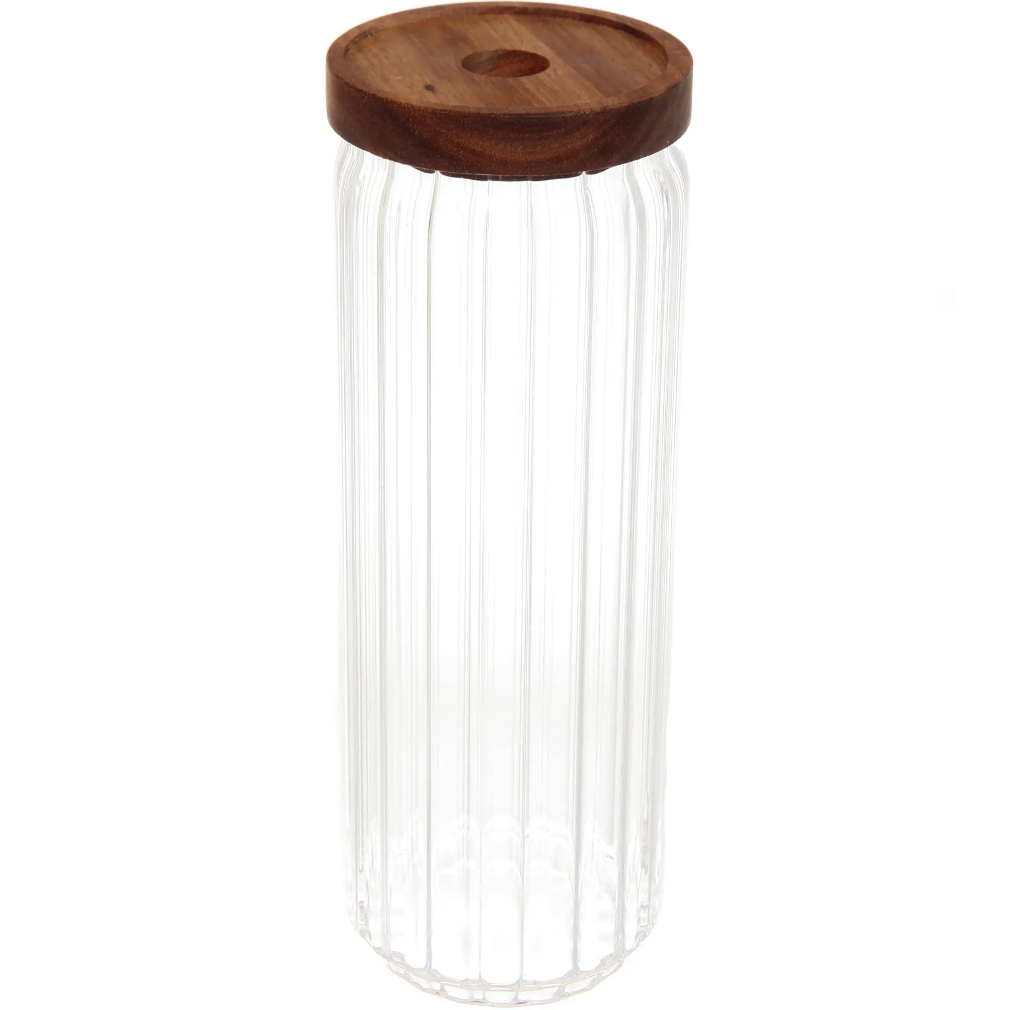 Размеры банки составляют 9 см в диаметре и 25 см в высоту, что делает её компактной и удобной для хранения на полках или в шкафах. Стекло легко моется и не впитывает запахи, а деревянная крышка придаёт изделию уникальный и стильный вид. Эта банка станет не только функциональным, но и эстетически привлекательным элементом вашей кухни.