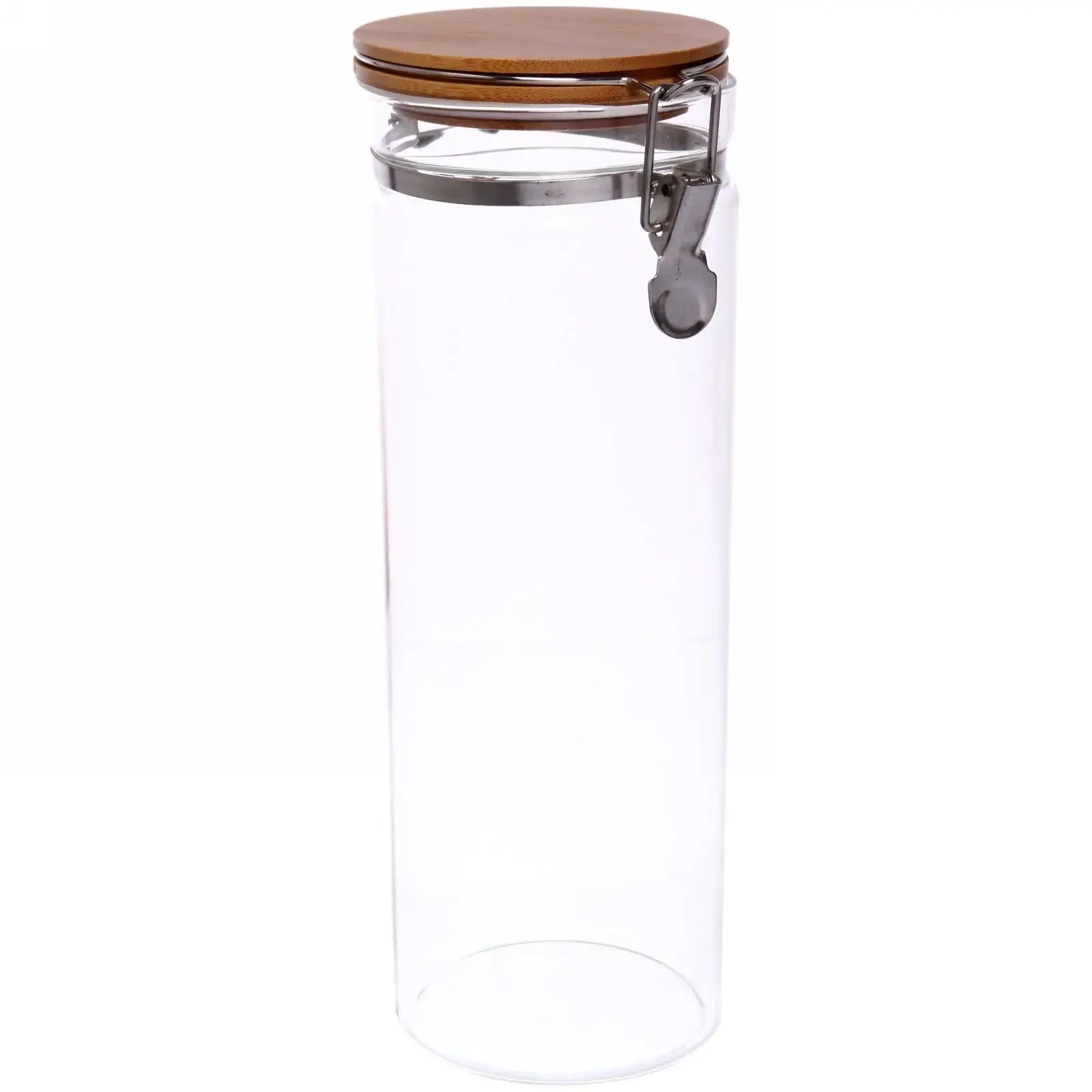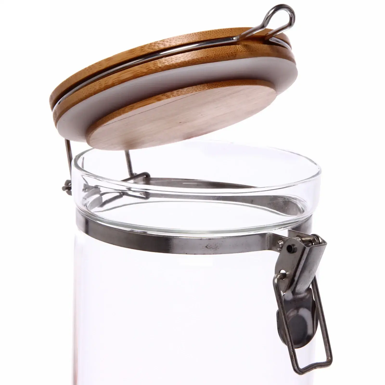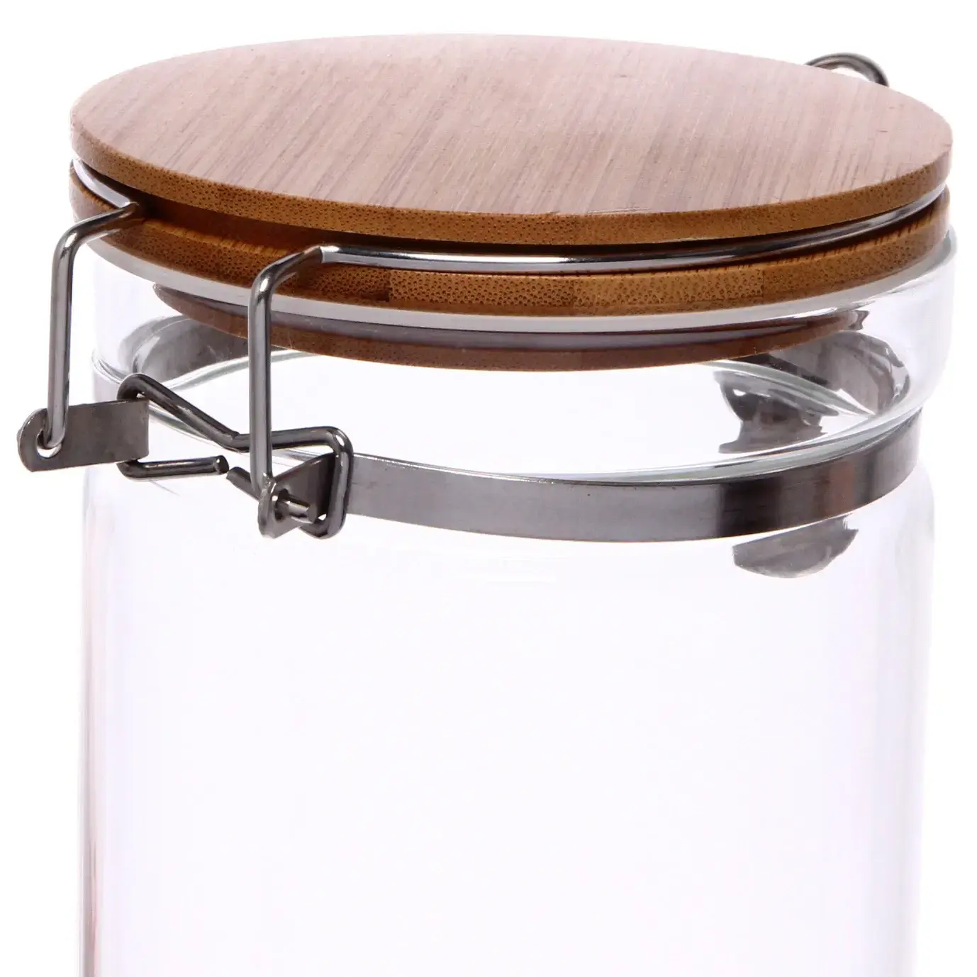 Объем 1700 мл подходит для хранения недельного запаса круп или крупнолистового чая. Стекло легко моется в посудомоечной машине, а бамбуковая крышка устойчива к перепадам влажности. Благодаря герметичному соединению продукты защищены от окисления и насекомых.