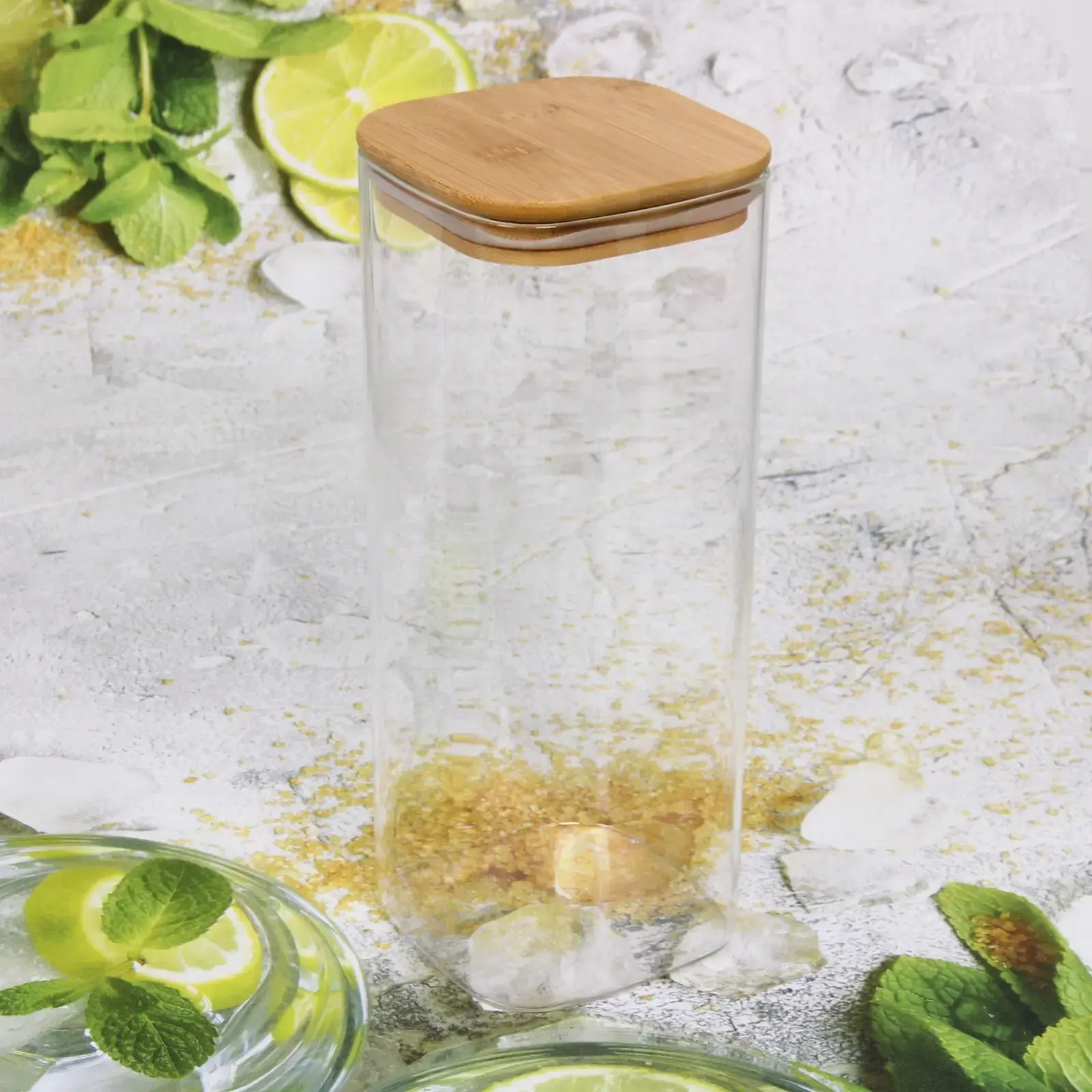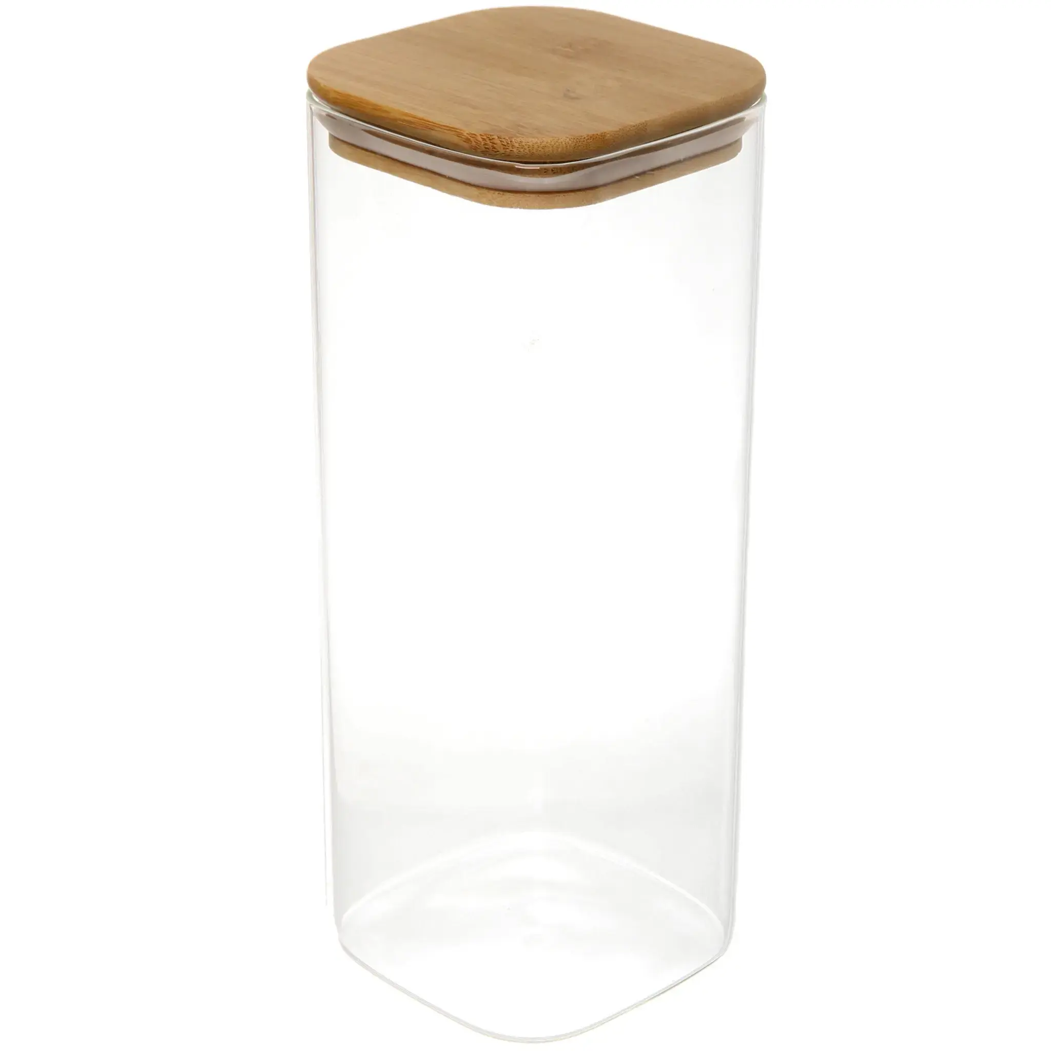 Эта стеклянная банка для продуктов объемом 1800мл станет идеальным решением для хранения ваших любимых сыпучих и сухих продуктов. Благодаря стильному дизайну и качественным материалам, она не только украсит вашу кухню, но и обеспечит надежное хранение. Бамбуковая крышка плотно прилегает к контейнеру, что гарантирует герметичность и сохранность свежести продуктов.