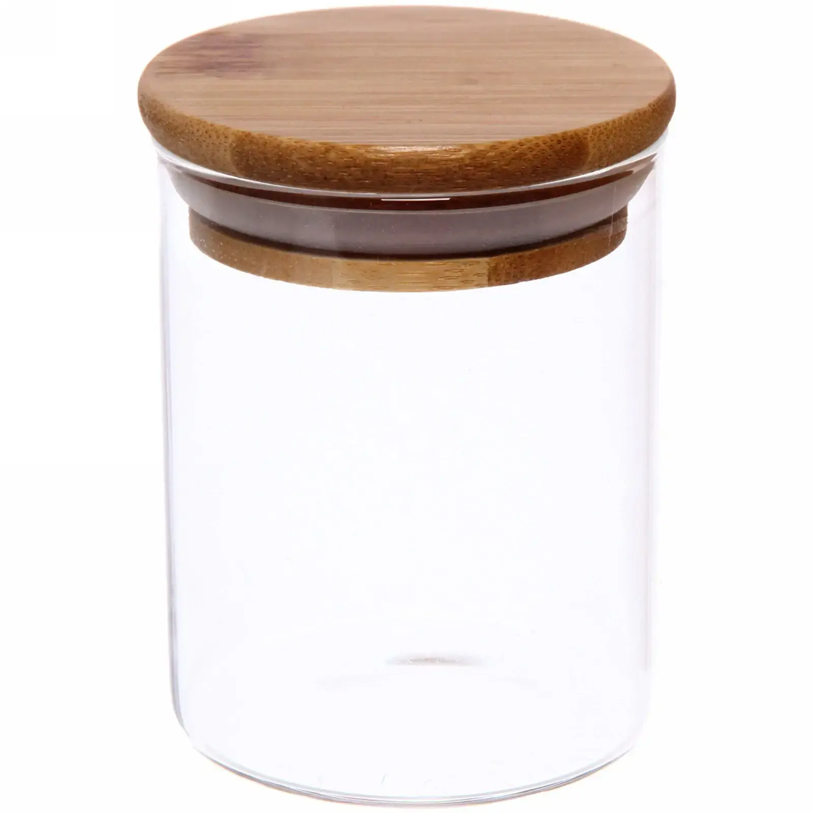 Банка «Хай-Тек» для сыпучих продуктов, стеклянная с бамбуковой крышкой, 200 мл, 6,5×9,5 см