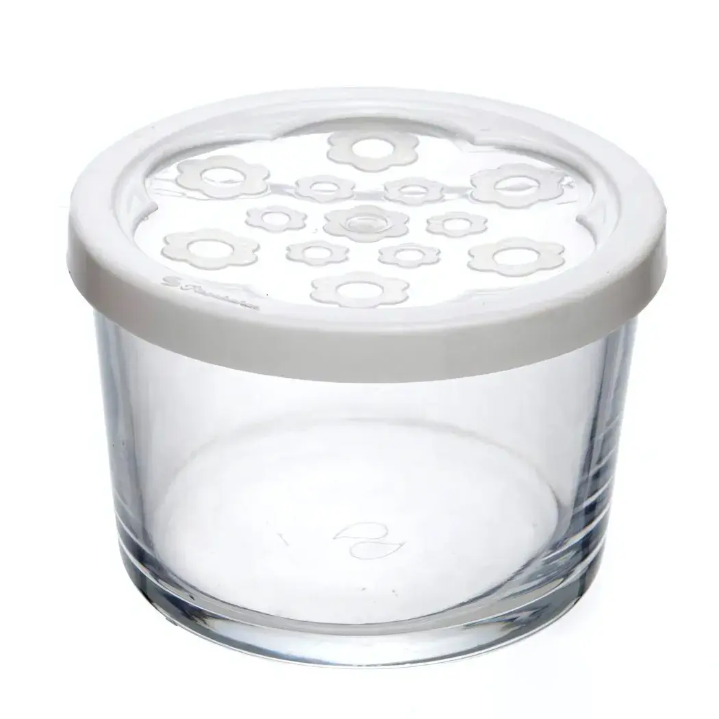Объем банки составляет 220мл, что делает ее идеальной для хранения небольших порций продуктов. Крышка с вентиляционными отверстиями позволяет избежать накопления влаги внутри, что особенно важно для хранения свежих продуктов. Размеры банки делают ее удобной для размещения в холодильнике или на полке.
