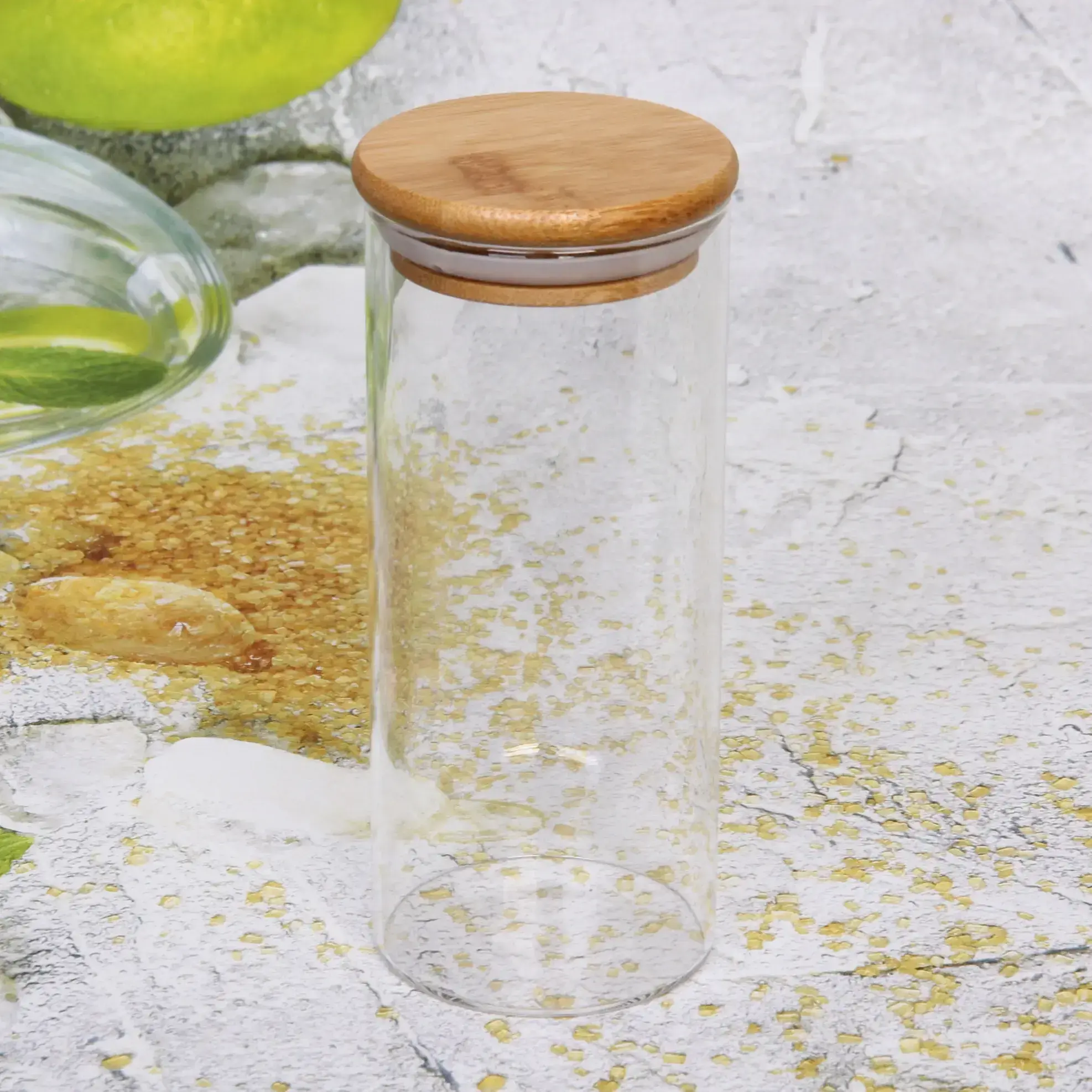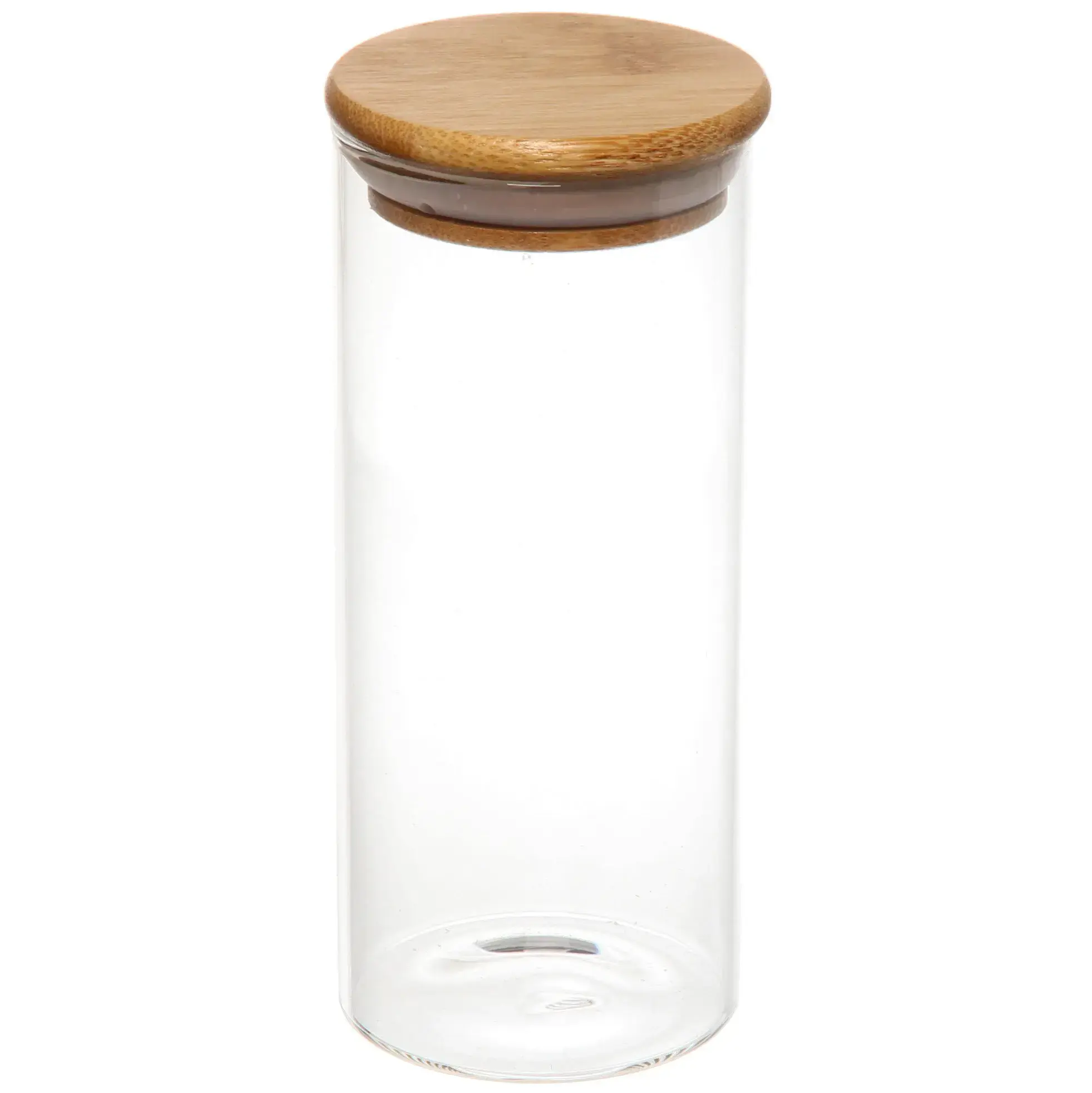 Размеры банки составляют 6,5 см в диаметре и 15 см в высоту, что делает ее компактной и удобной для хранения. Прозрачное стекло позволяет видеть содержимое, а бамбуковая крышка добавляет натуральный акцент. Эта банка станет отличным дополнением к вашей кухонной утвари и поможет поддерживать порядок в хранении продуктов.